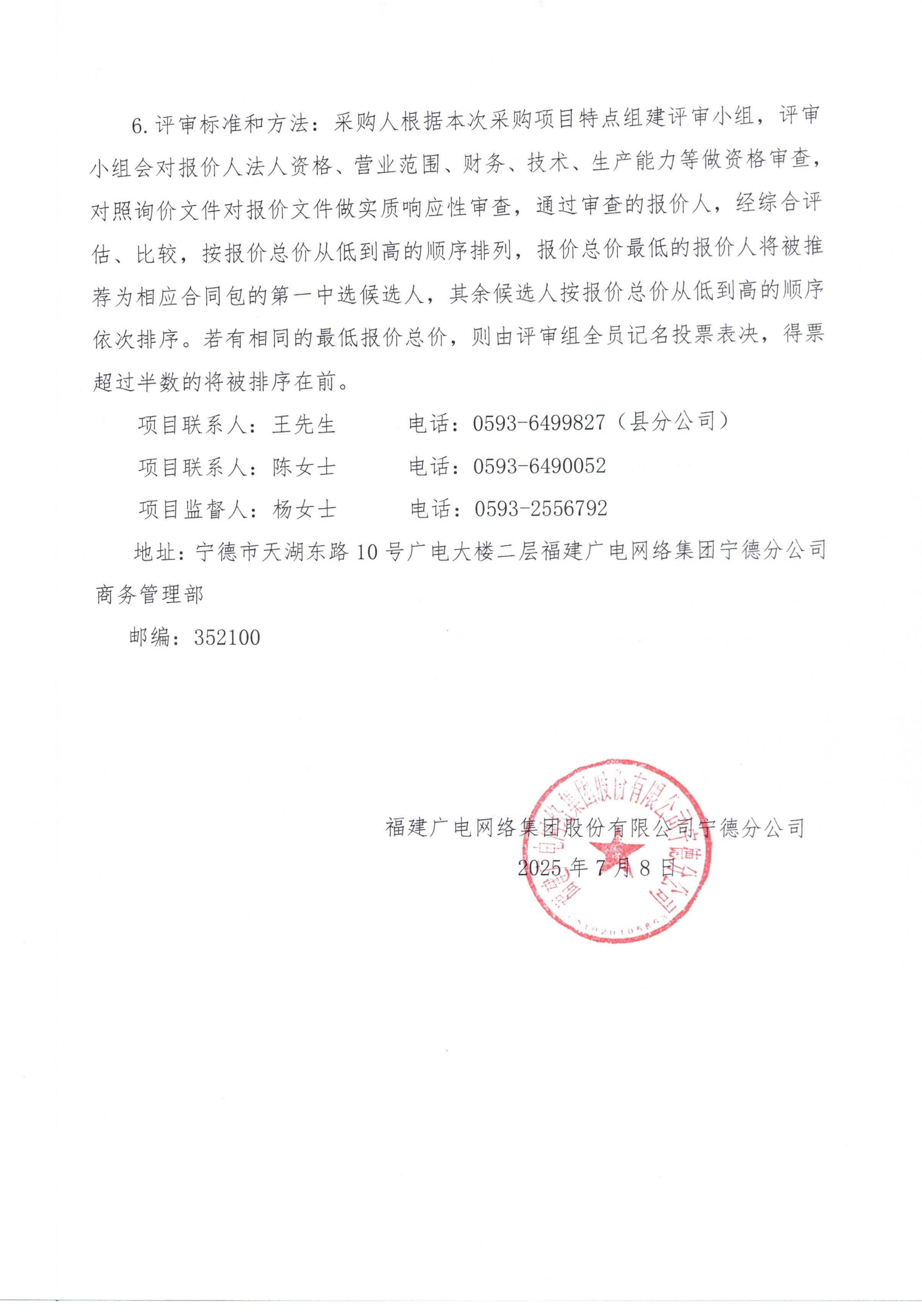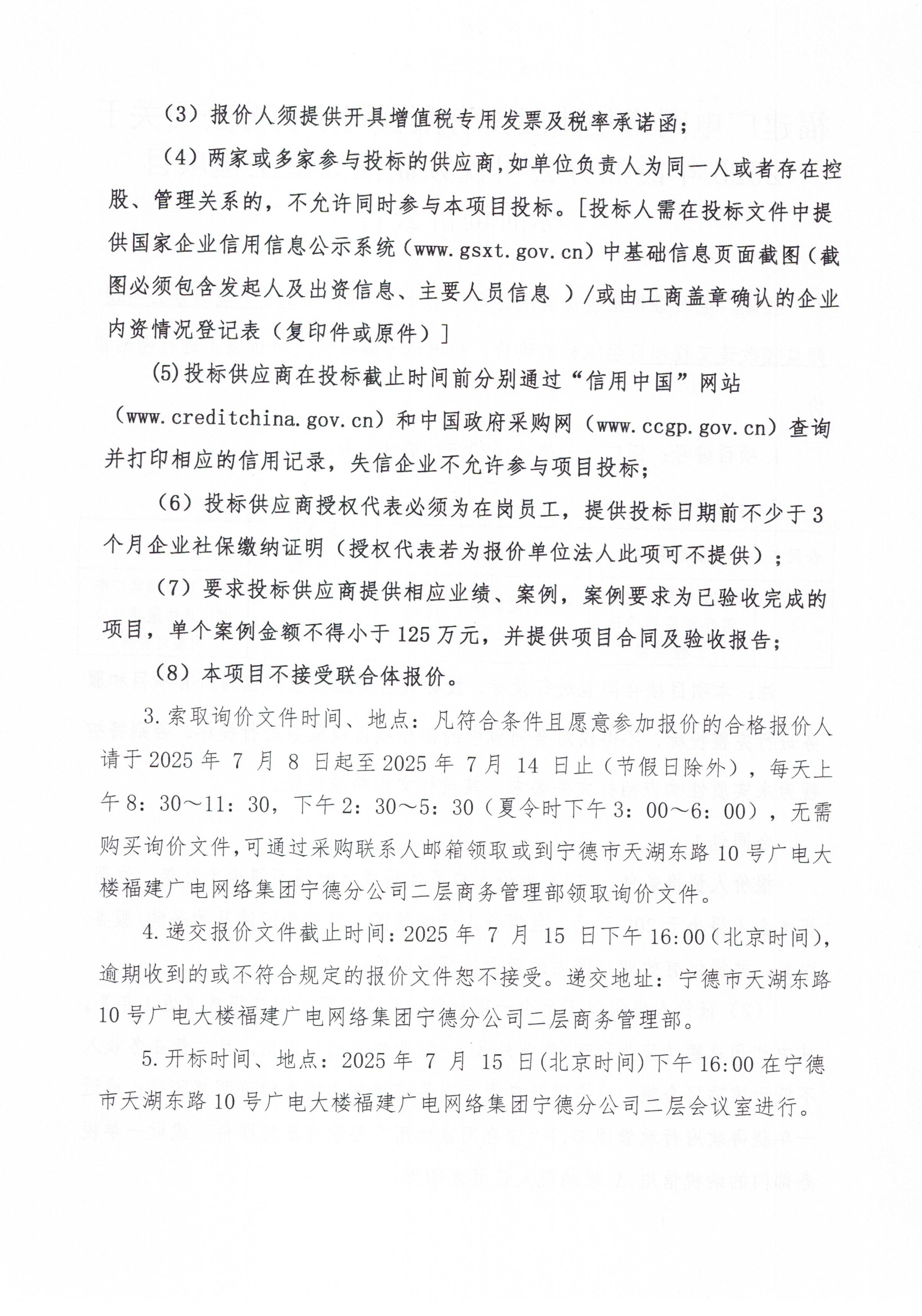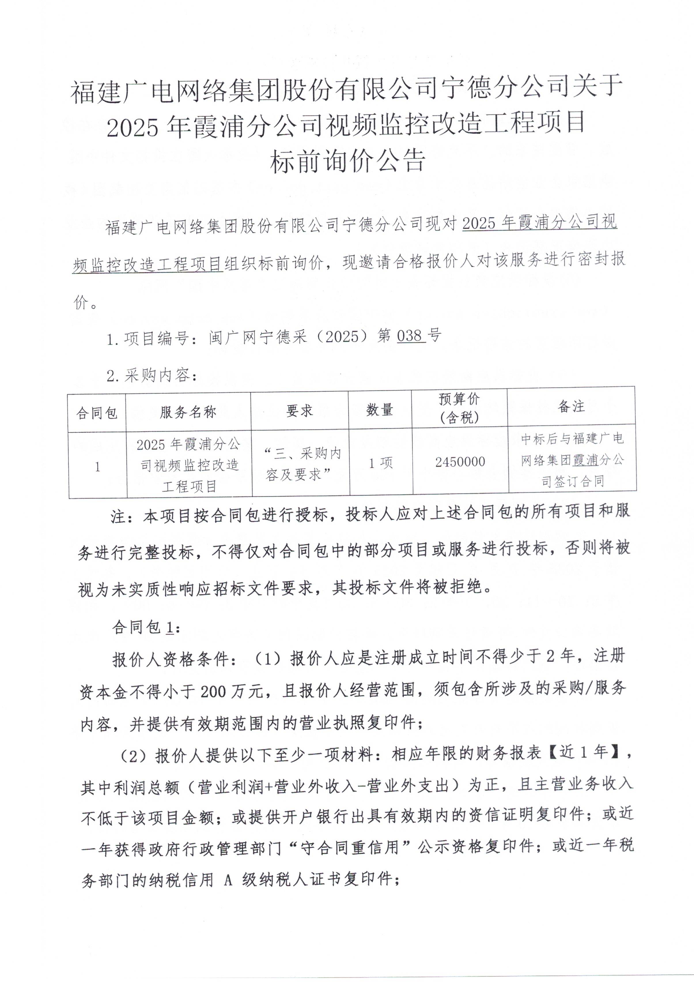 福建广电网络集团股份有限公司宁德分公司关于2025年霞浦分公司视频监控改造工程项目