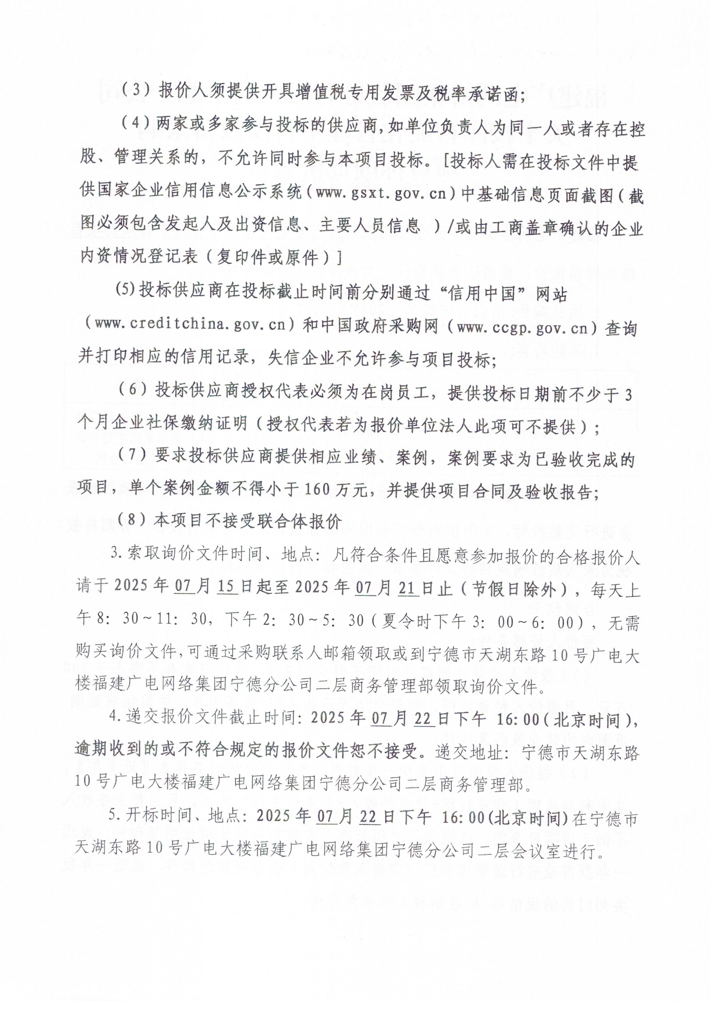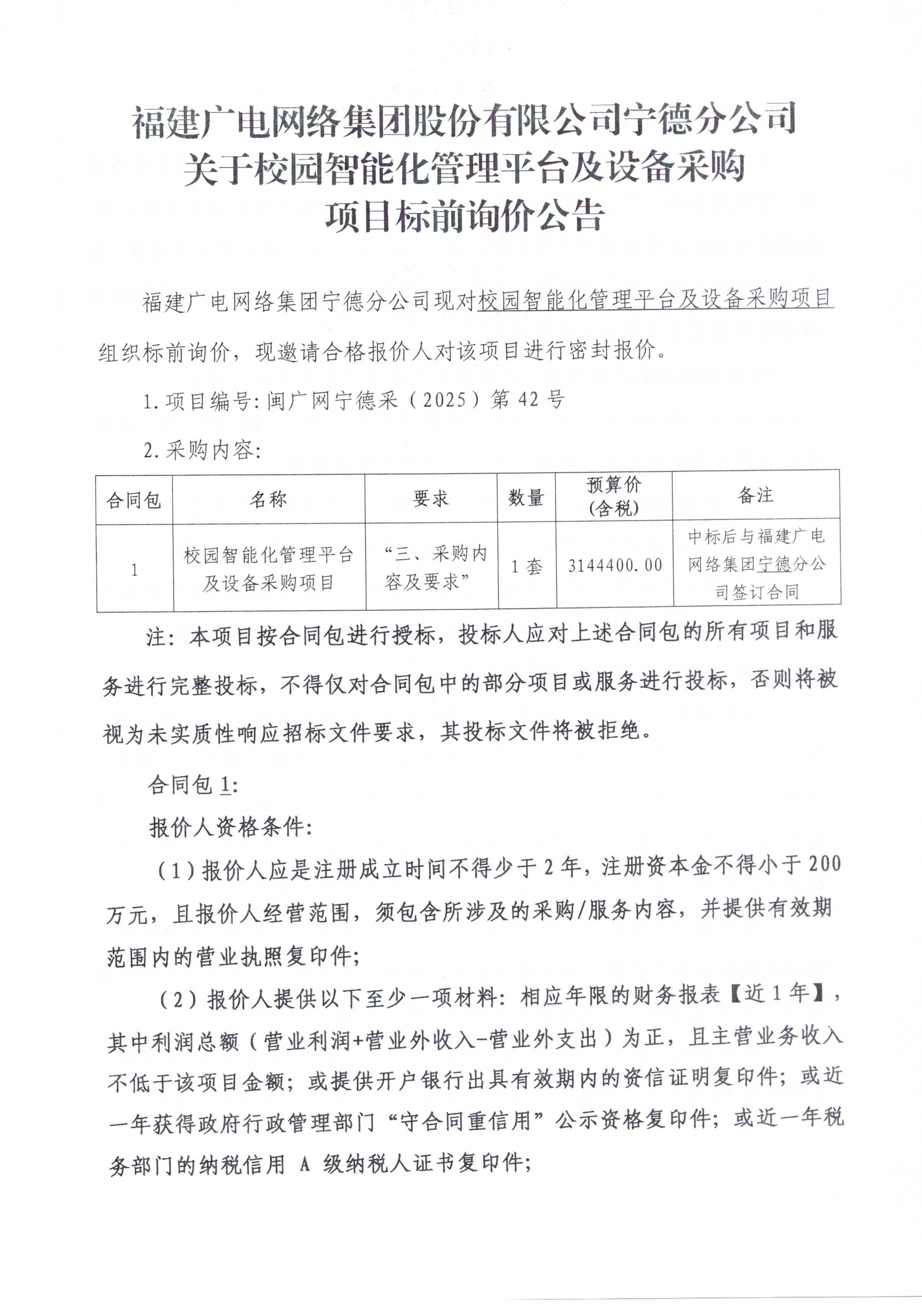 福建广电网络集团股份有限公司宁德分公司关于校园智能化管理平台及设备采购项目