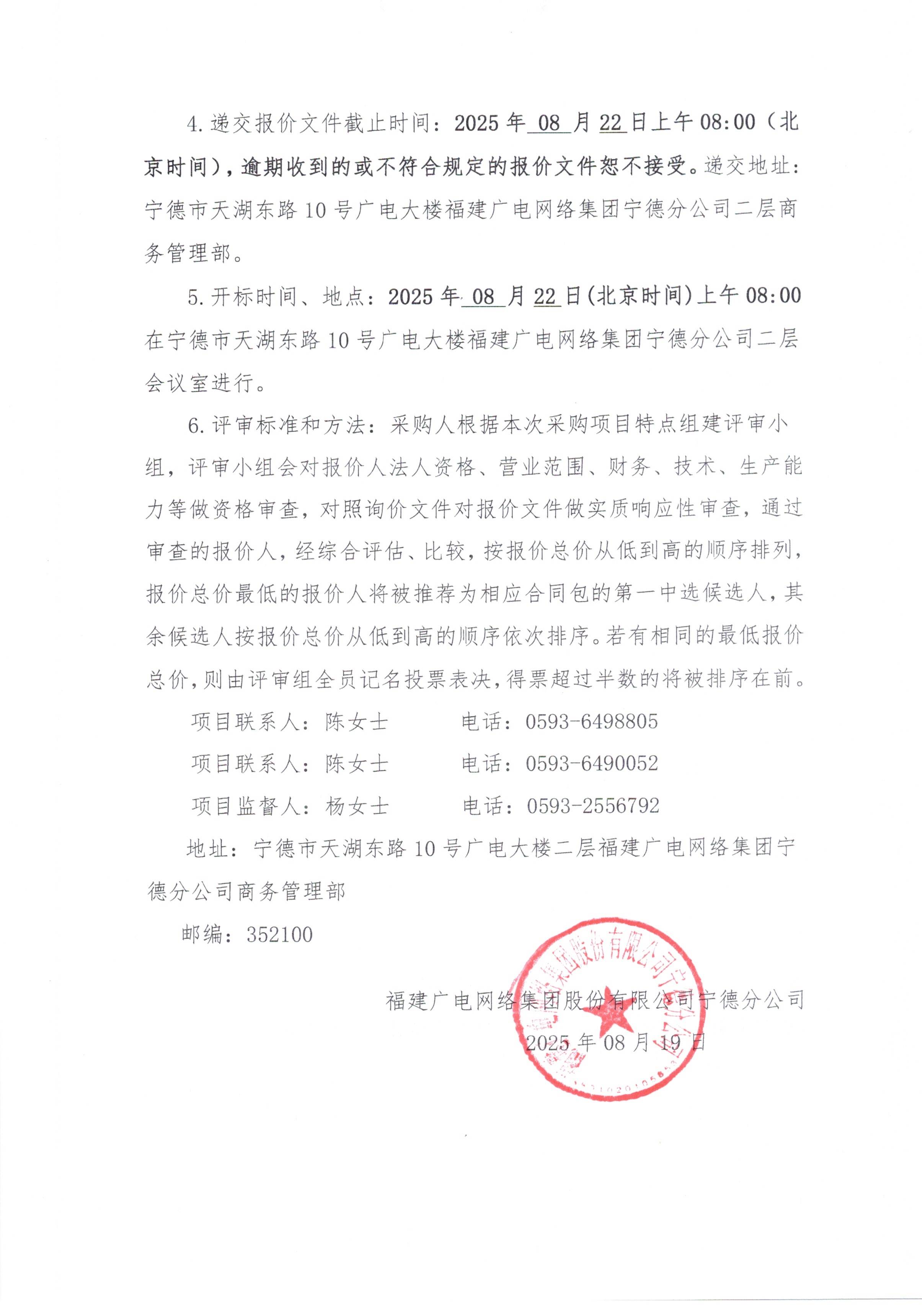宁德分公司关于2025年福安分公司某教学综合楼设备购置项目