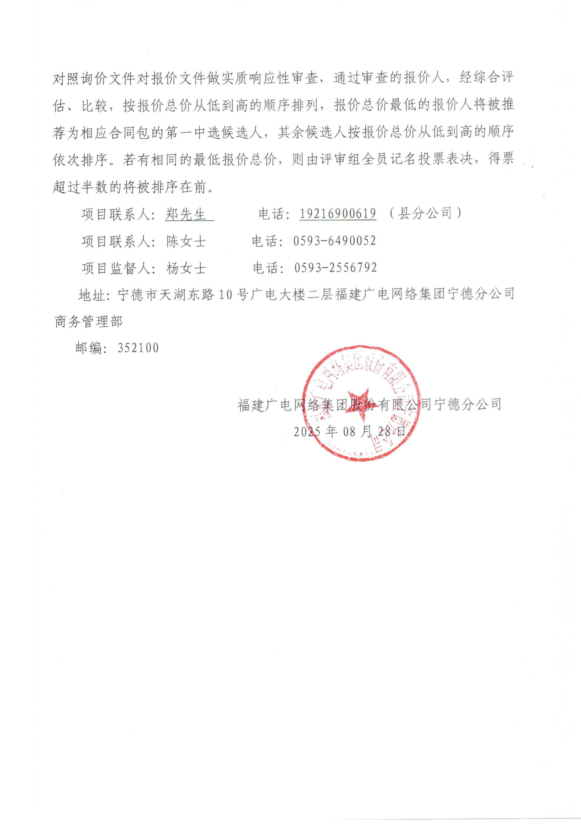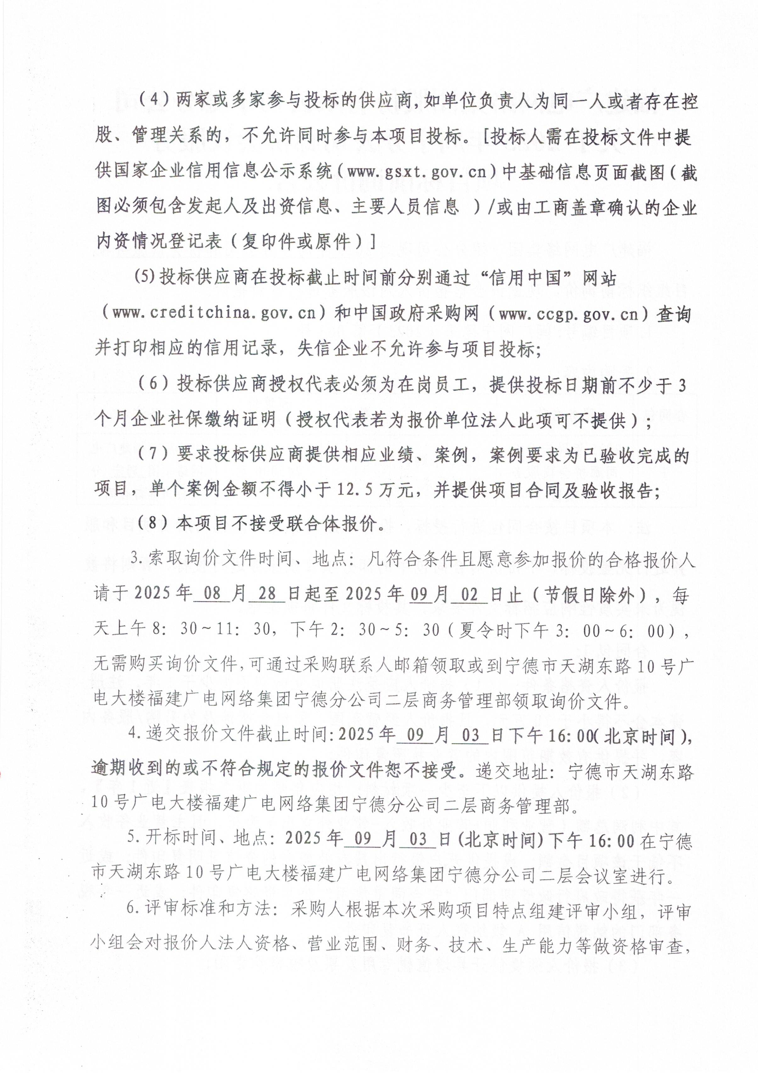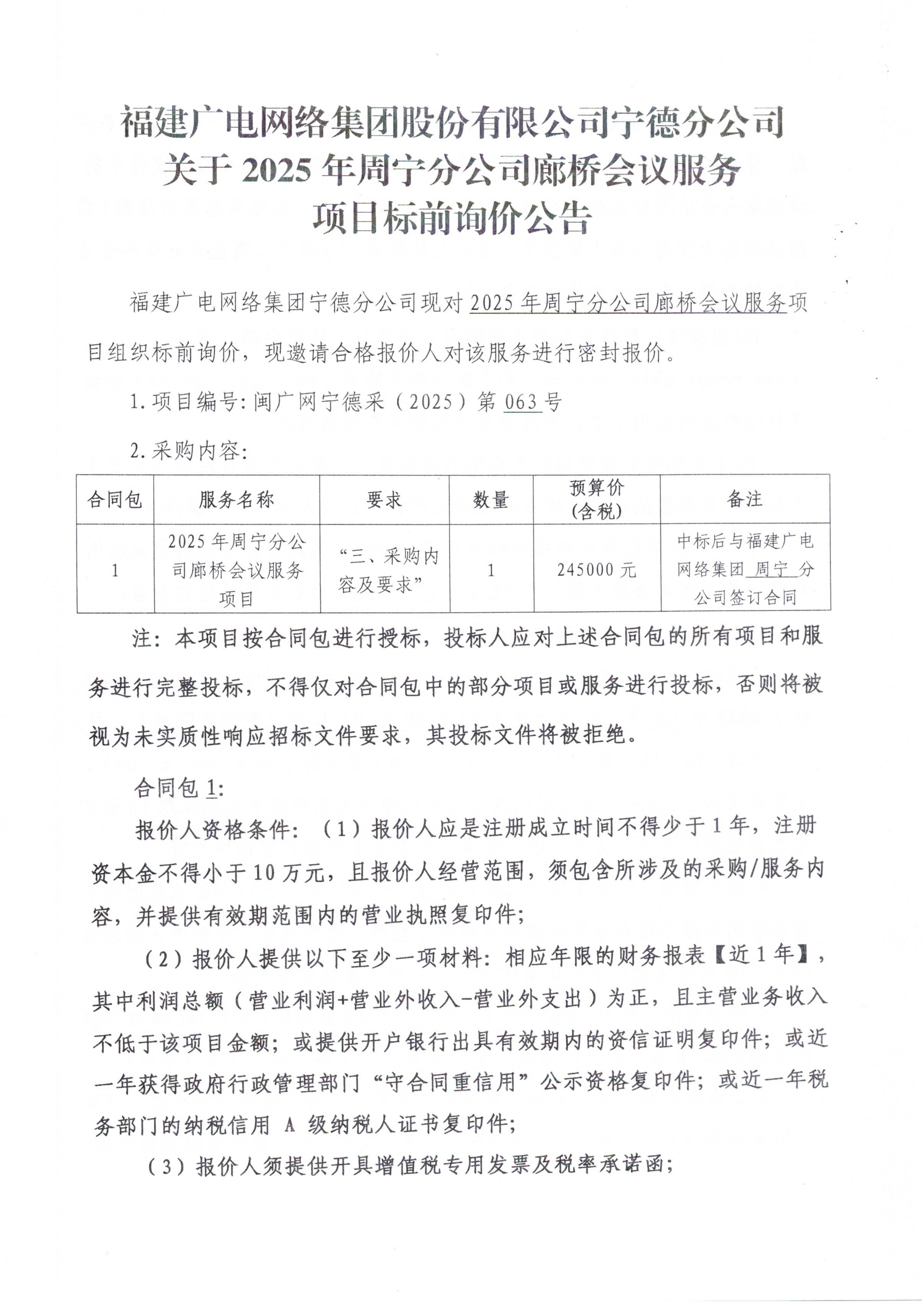 2025年周宁分公司廊桥会议服务项目标前询价公告