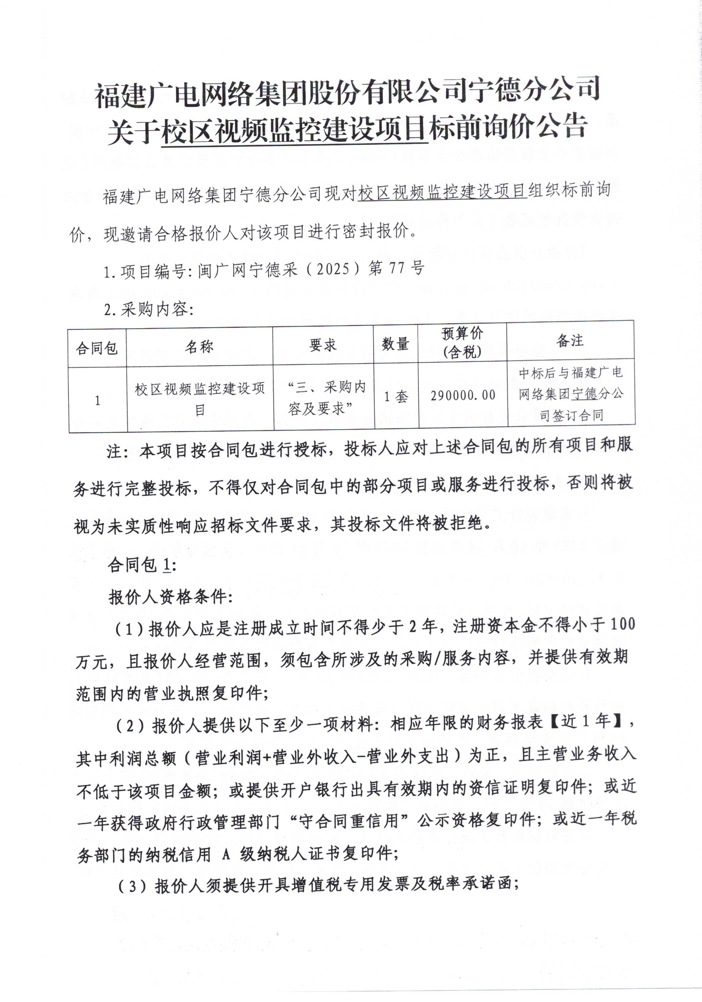 福建广电网络集团股份有限公司宁德分公司校区视频监控建设项目