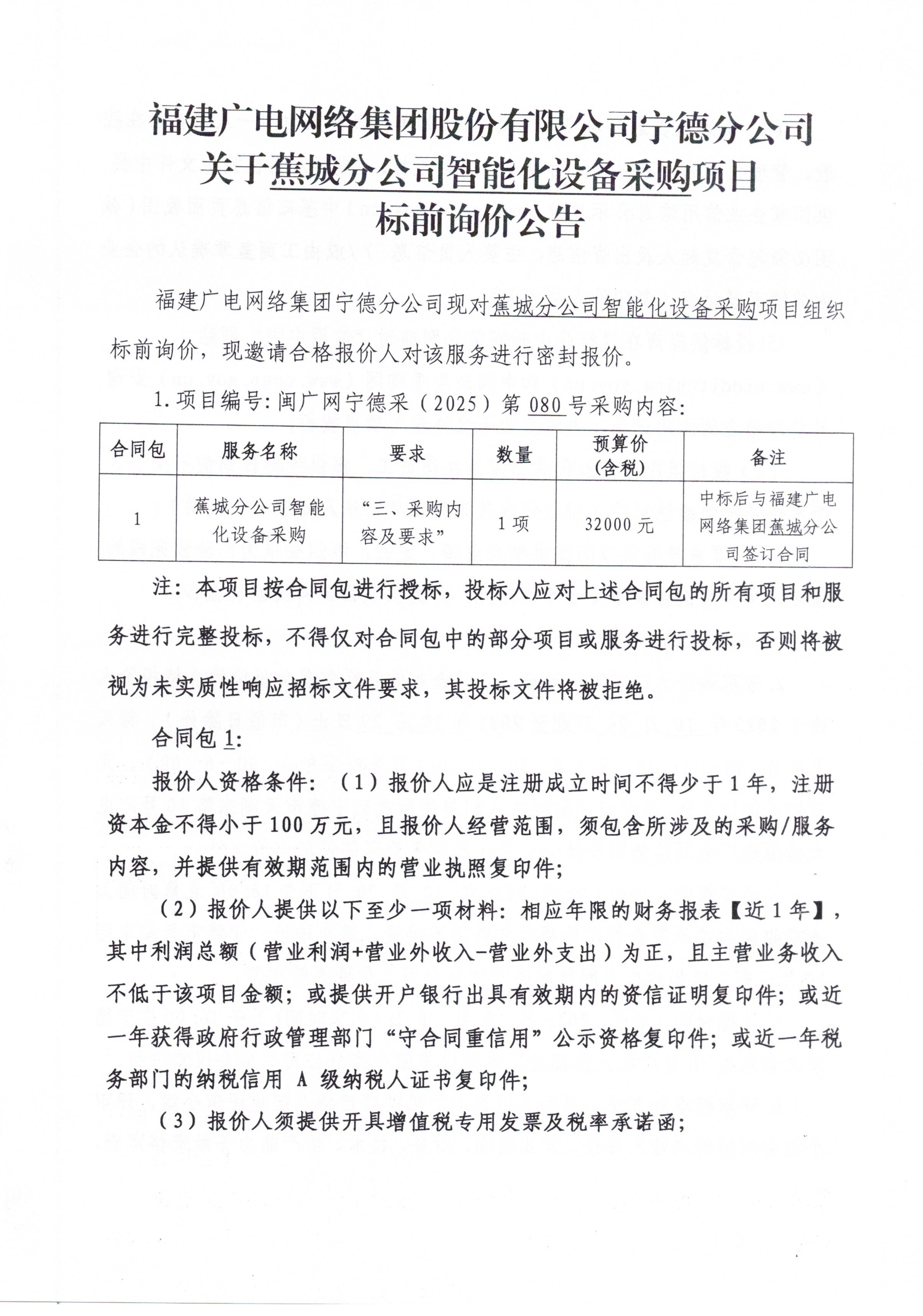 蕉城分公司智能化设备采购项目