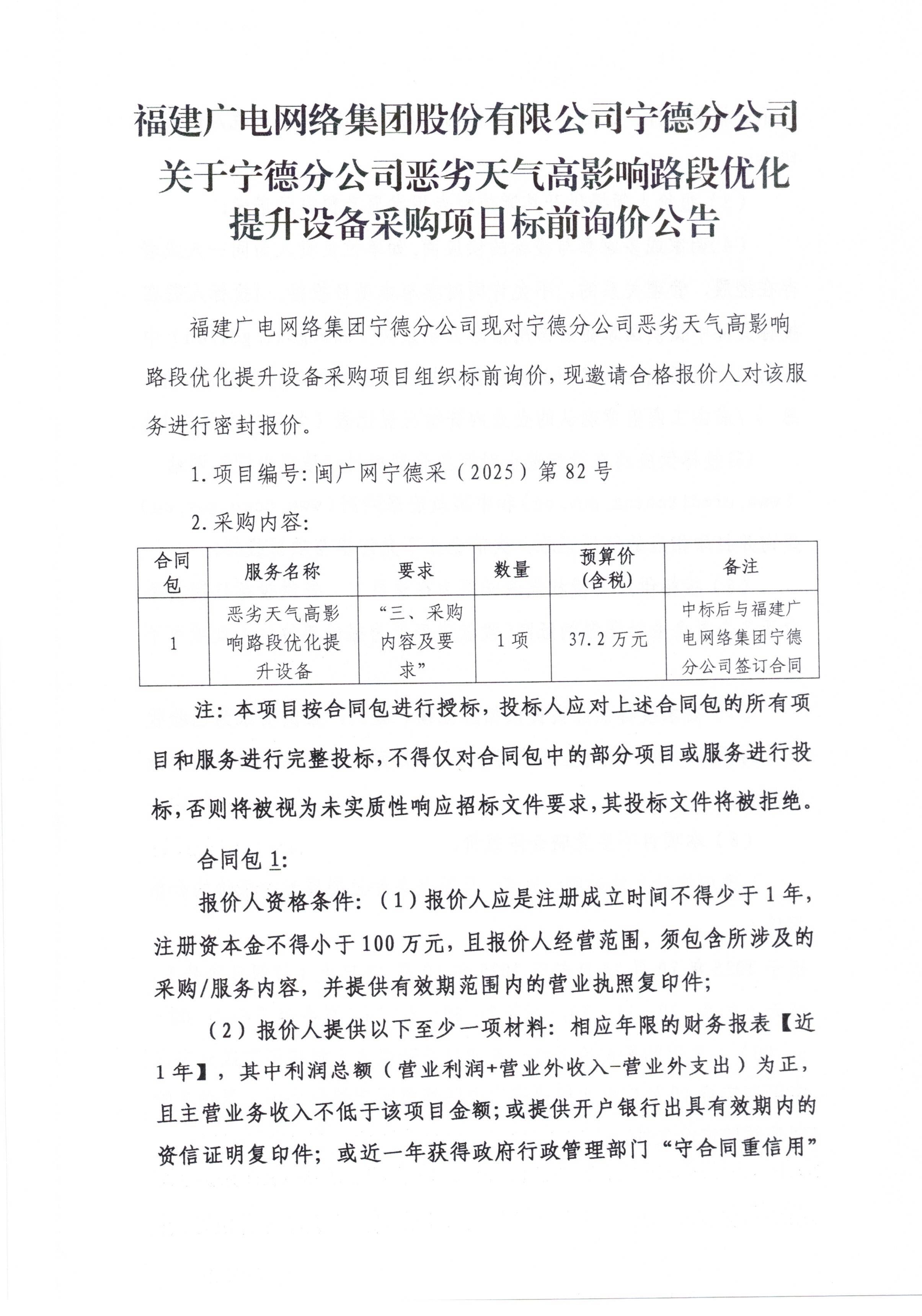 宁德分公司恶劣天气高影响路段优化提升设备采购项目