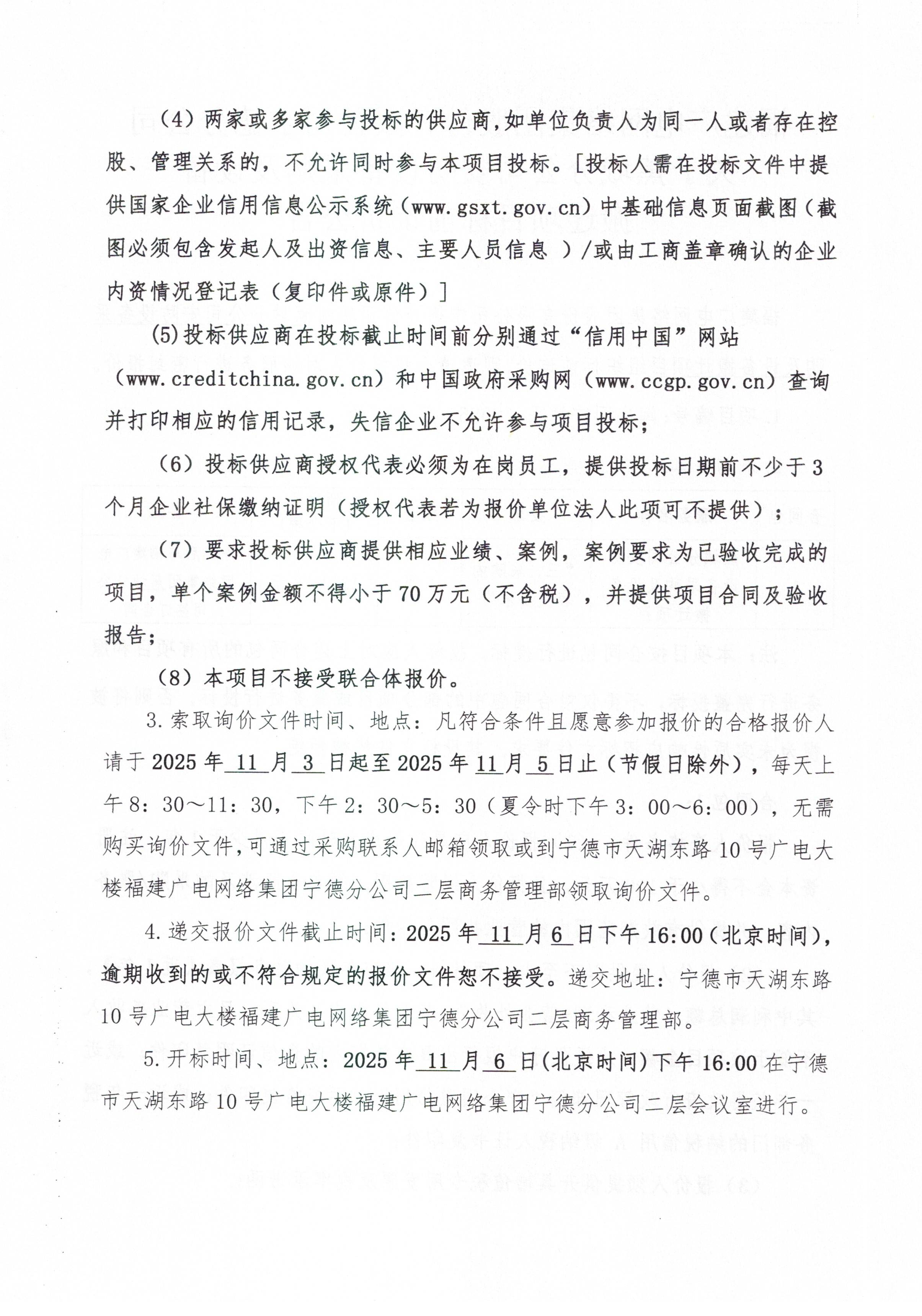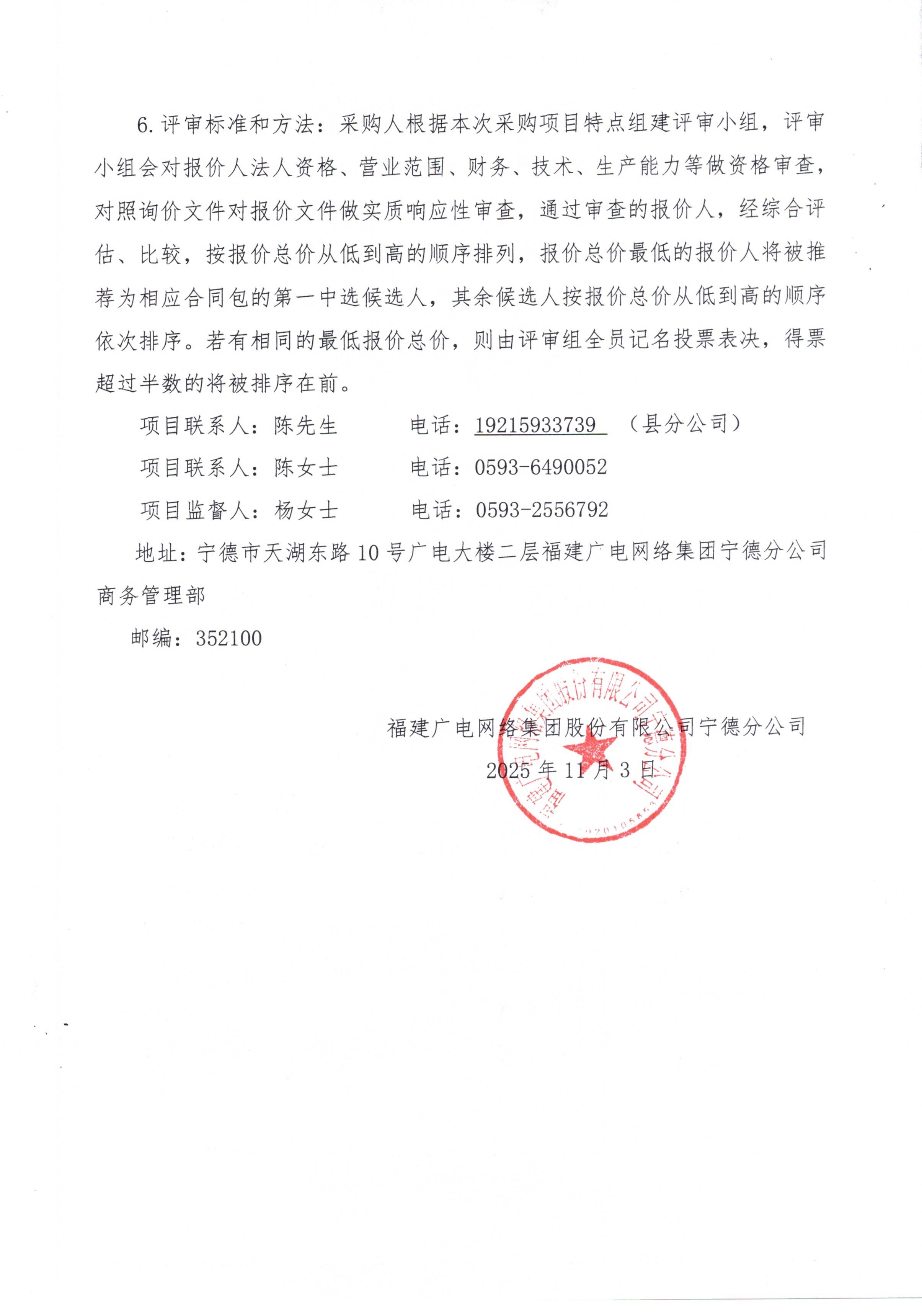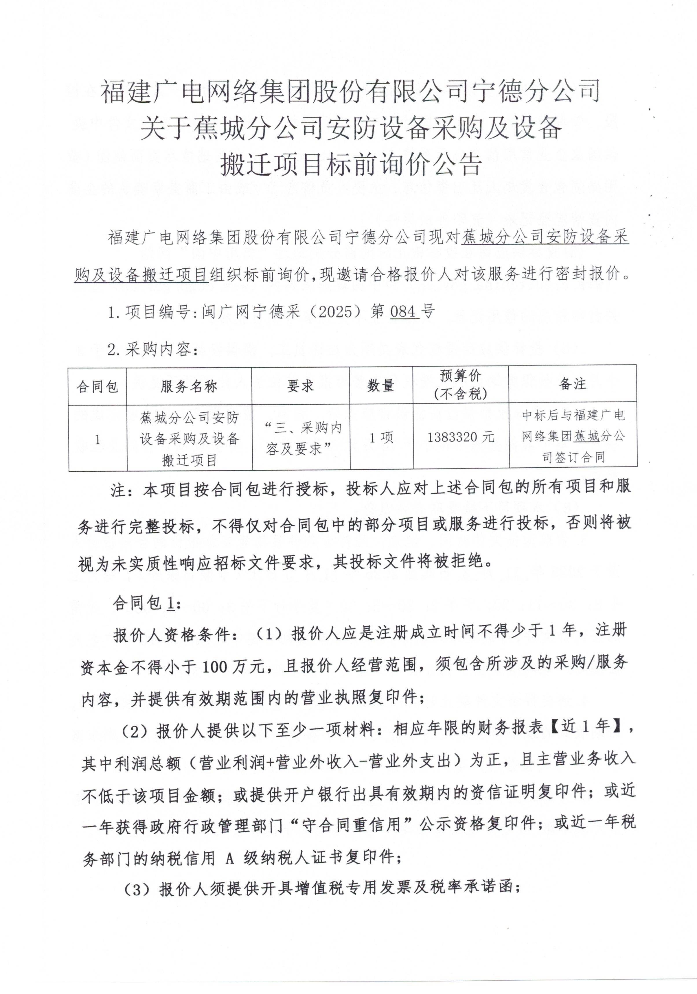 福建广电网络集团股份有限公司宁德分公司关于蕉城分公司安防设备采购及设备搬迁项目