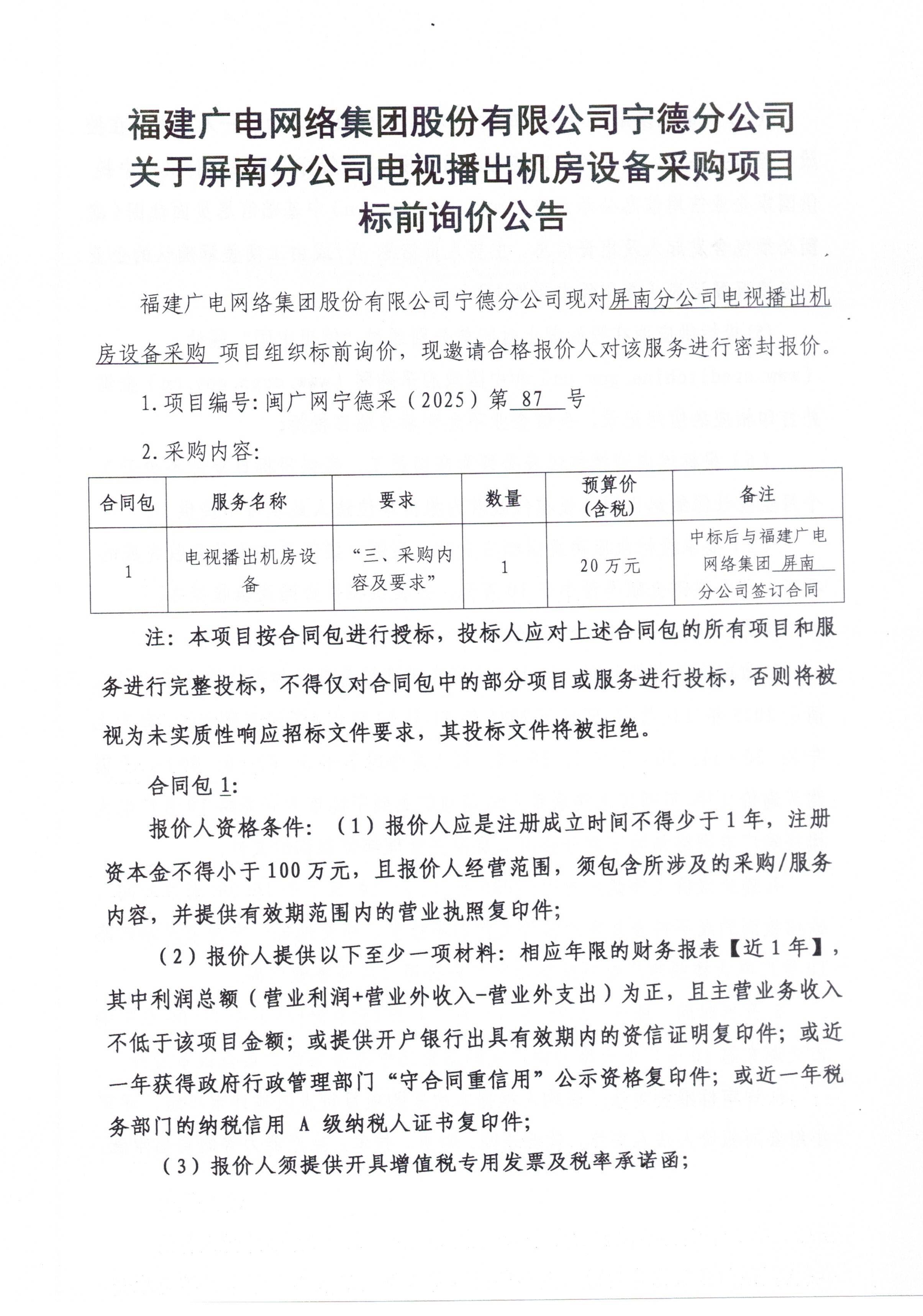 屏南县电视播出机房升级改造设备采购项目
