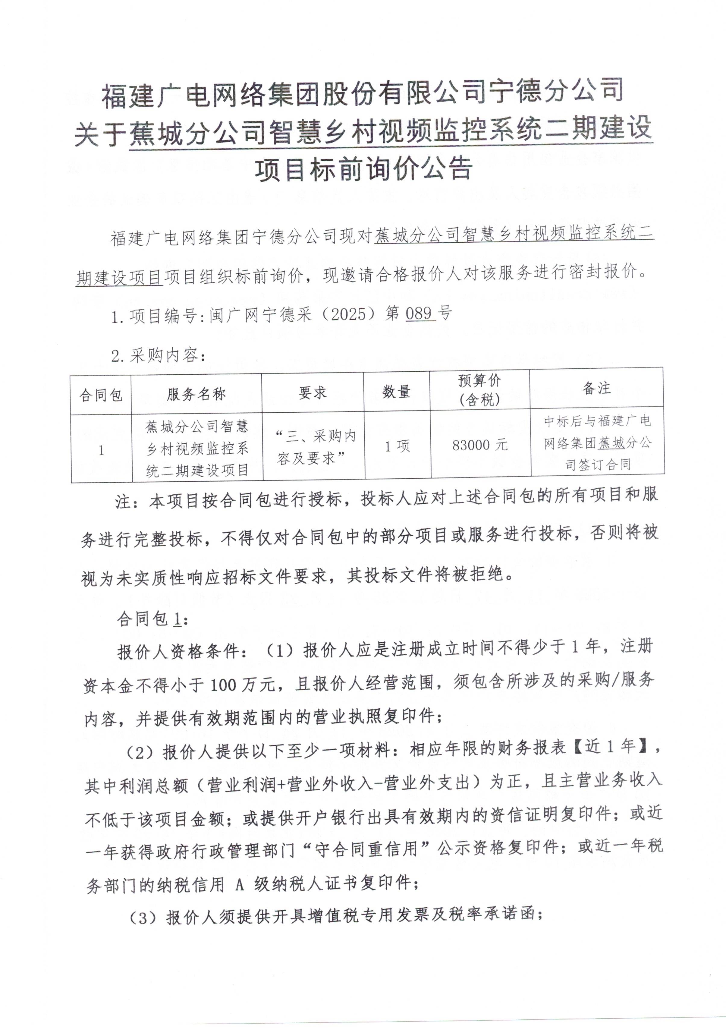 蕉城分公司智慧乡村视频监控系统二期建设项目