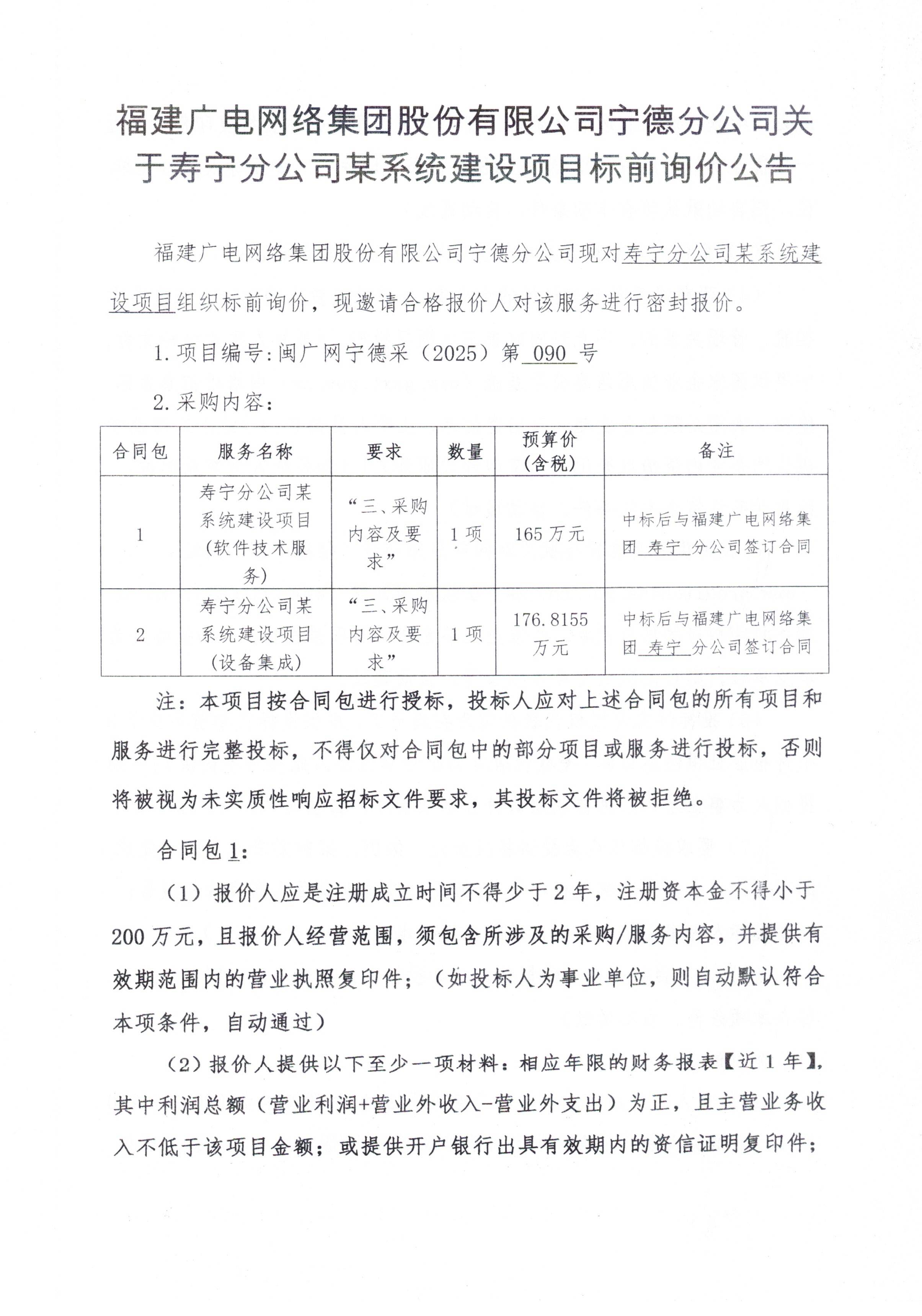 福建广电网络集团股份有限公司寿宁分公司某系统建设项目