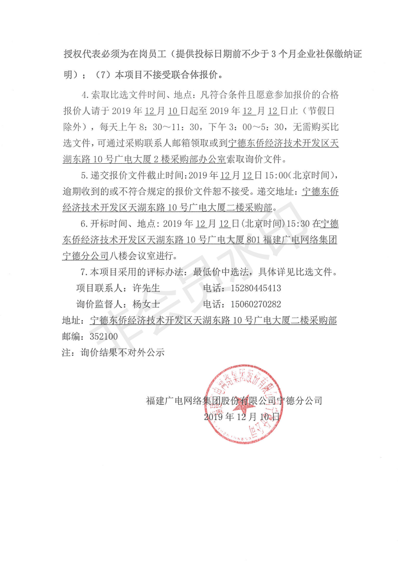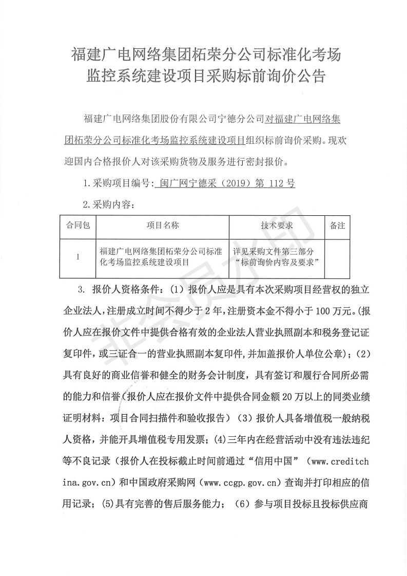 柘荣分公司标准化考场监控系统建设项目采购标前询价公告
