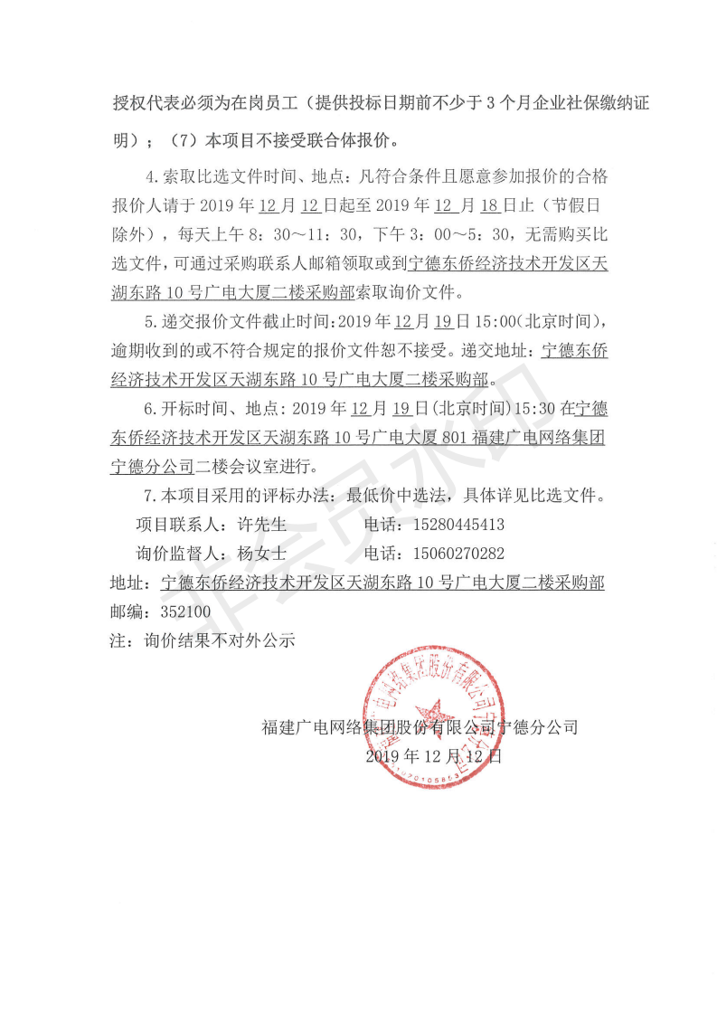 柘荣分公司会议室音响系统项目采购标前询价公告