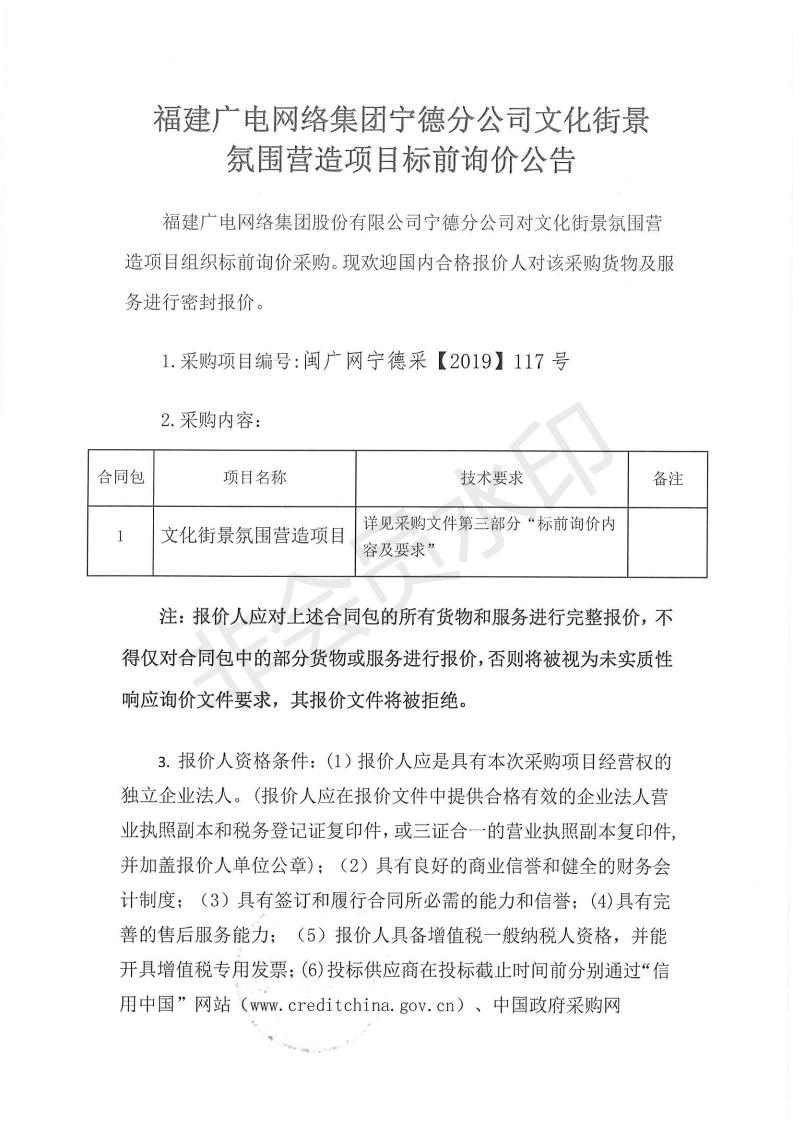 周宁分公司文化街景氛围营造项目标前询价公告