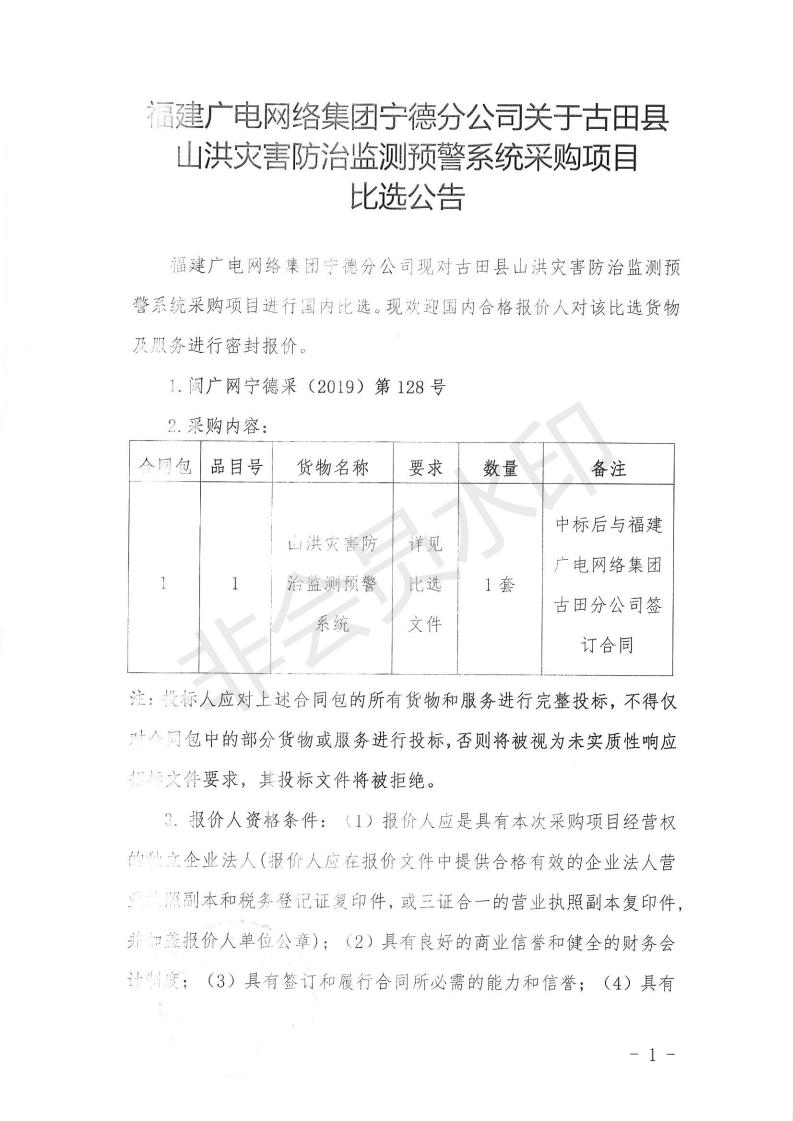 古田县山洪灾害防治监测预警系统采购项目必选公告