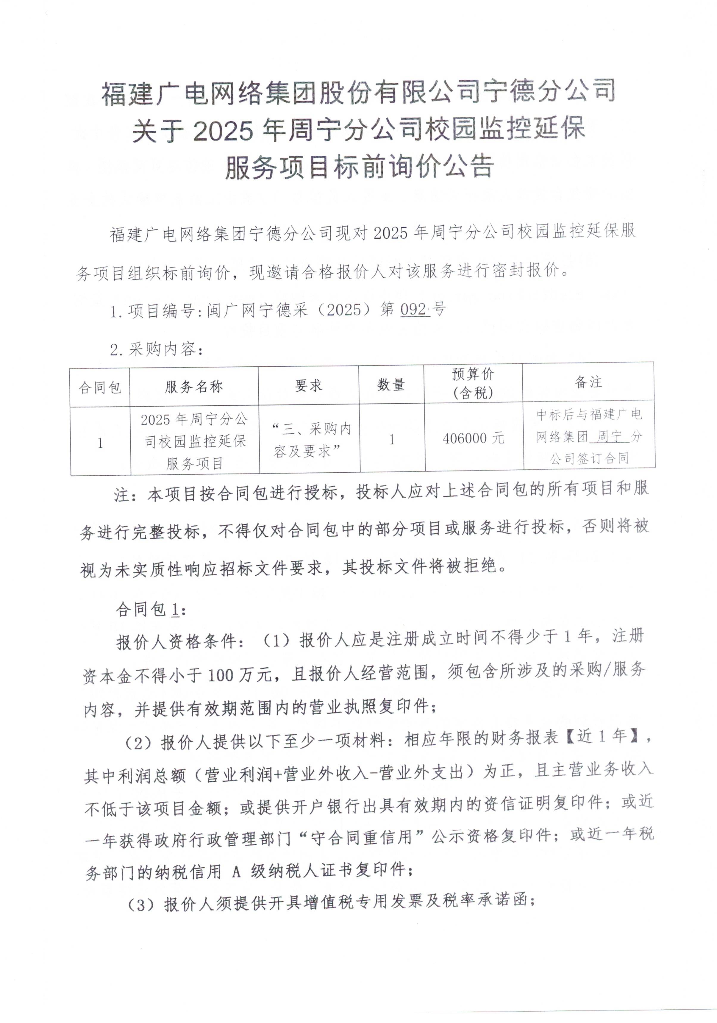 2025年周宁分公司校园监控延保服务项目