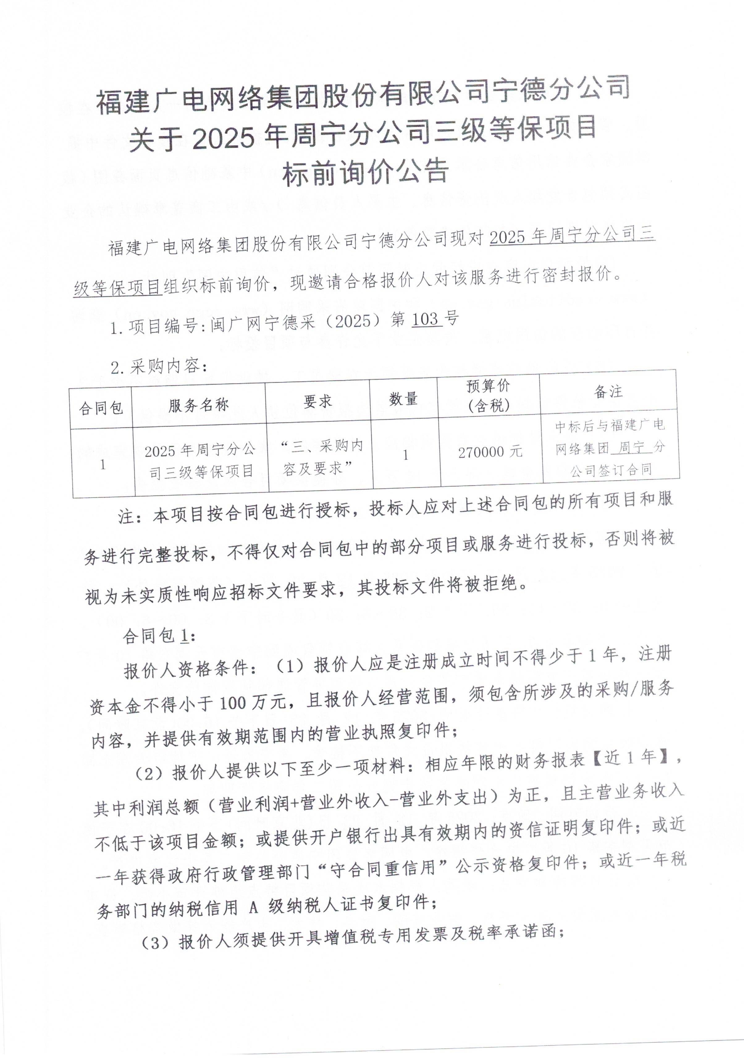2025年周宁分公司三级等保项目(标前询价)