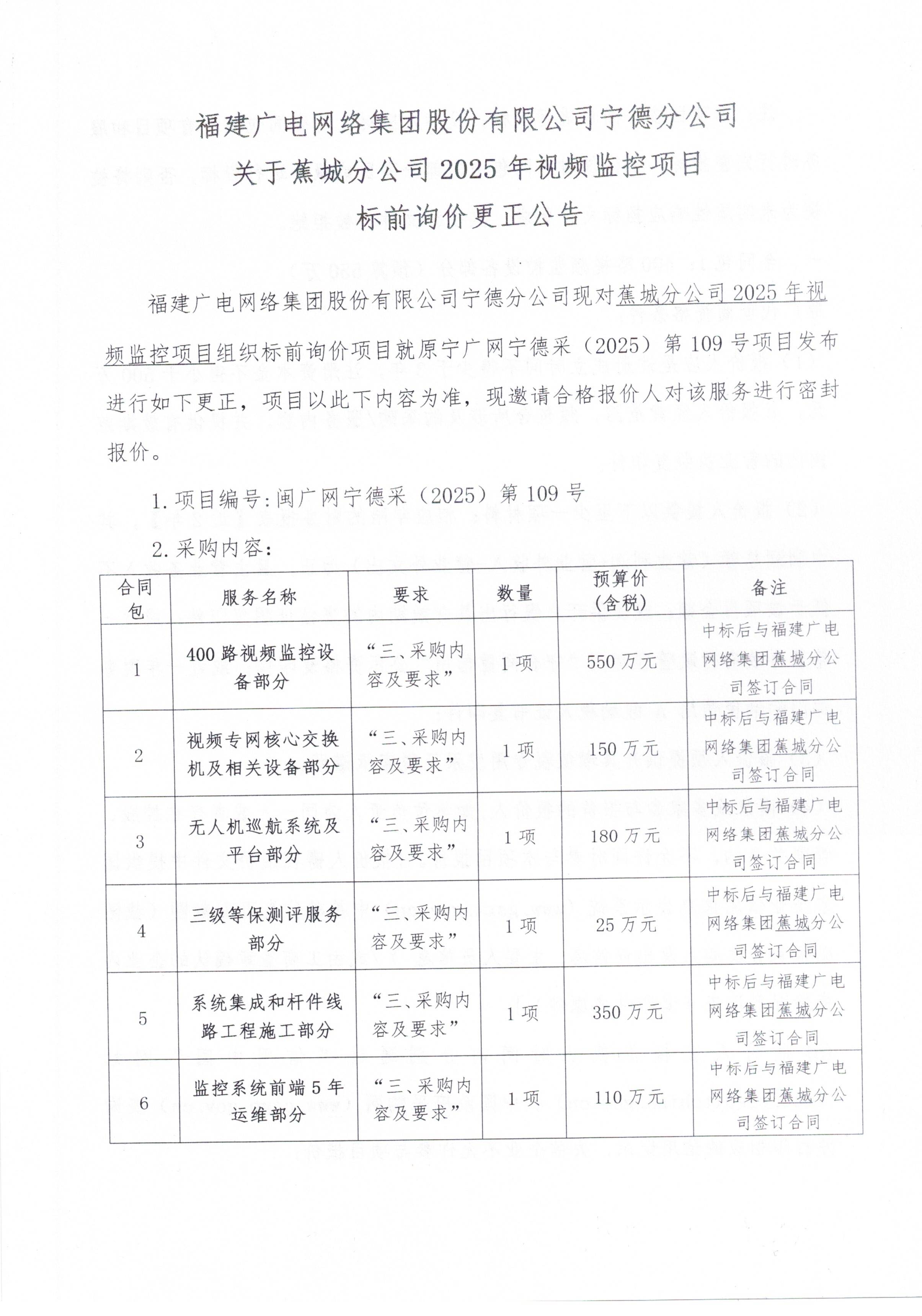 蕉城分公司2025年视频监控项目(标前询价)更正公告