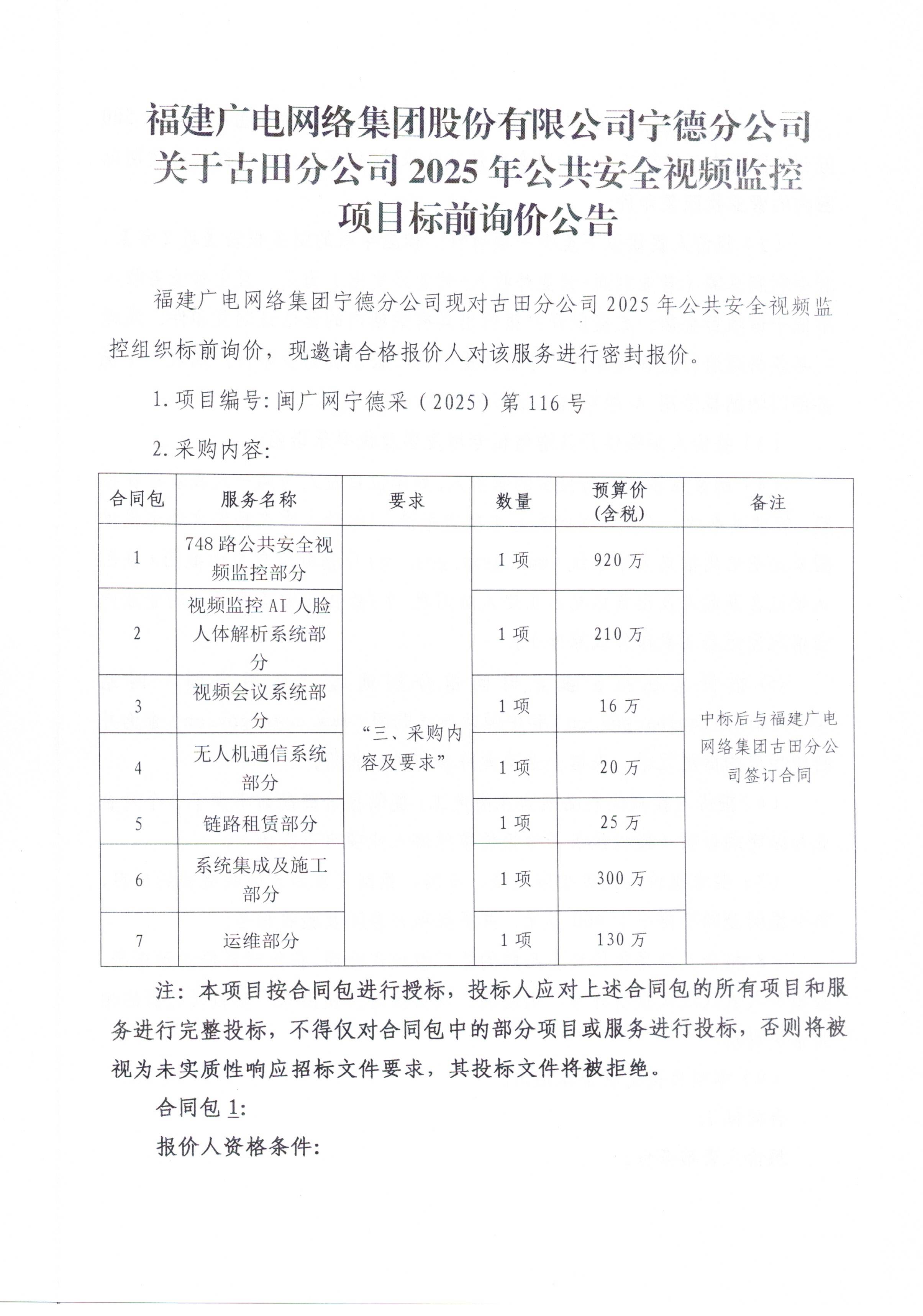古田分公司2025年公共安全视频监控(标前询价)