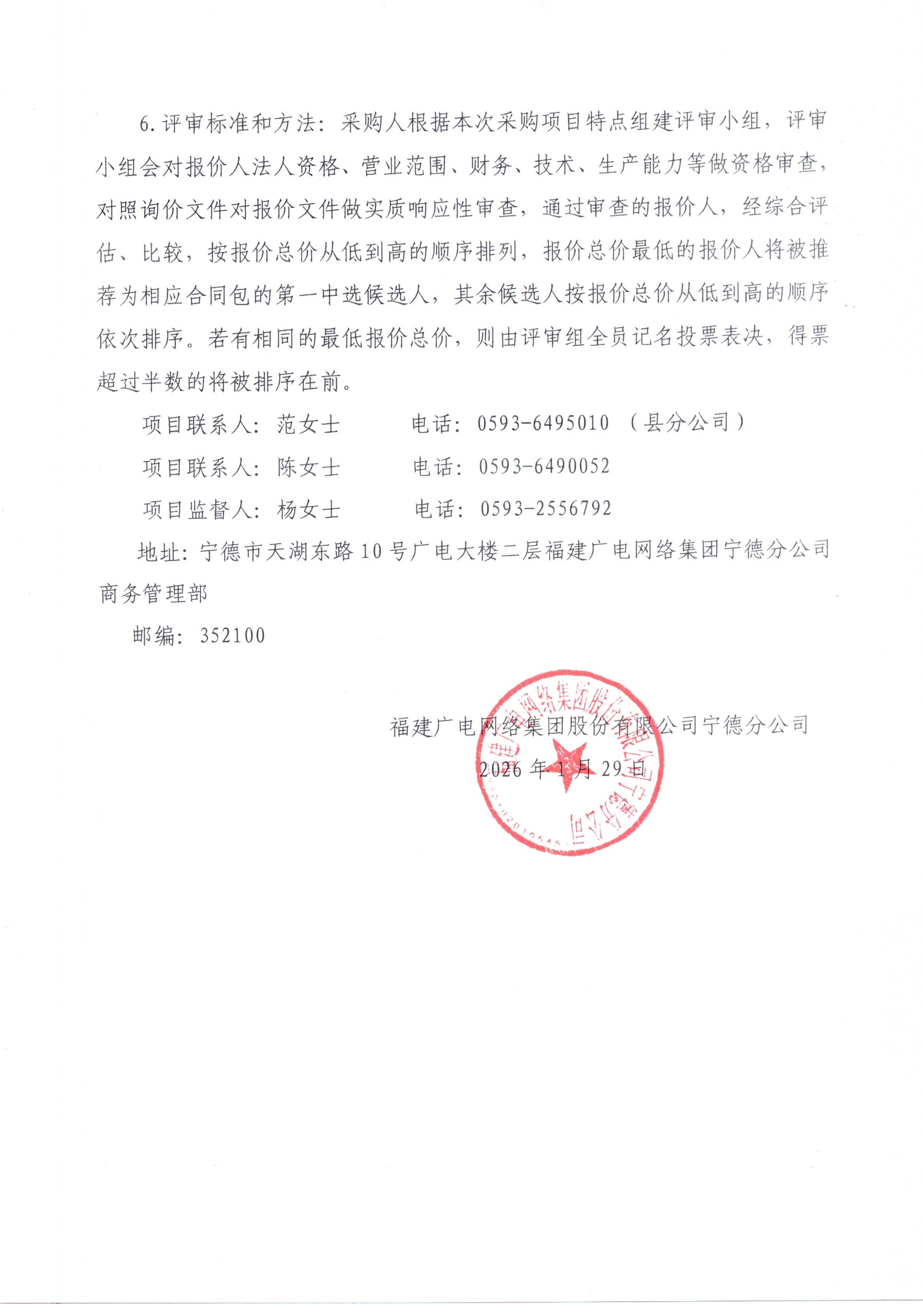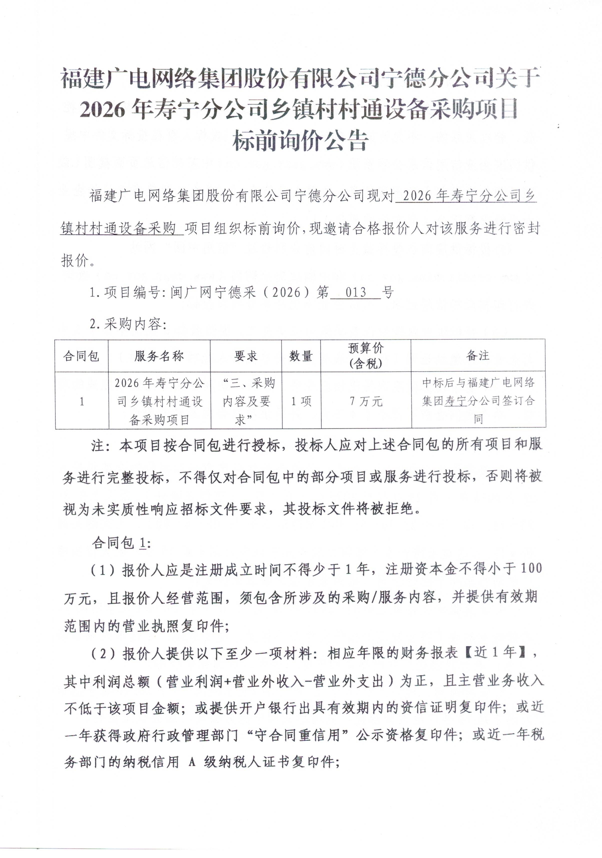 2026年寿宁分公司乡镇村村通设备采购项目