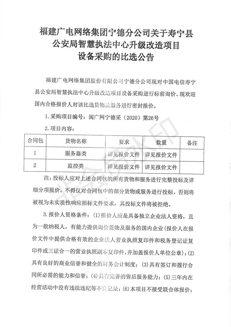 寿宁县公安局智慧执法中心升级改造项目设备采购的比选公告