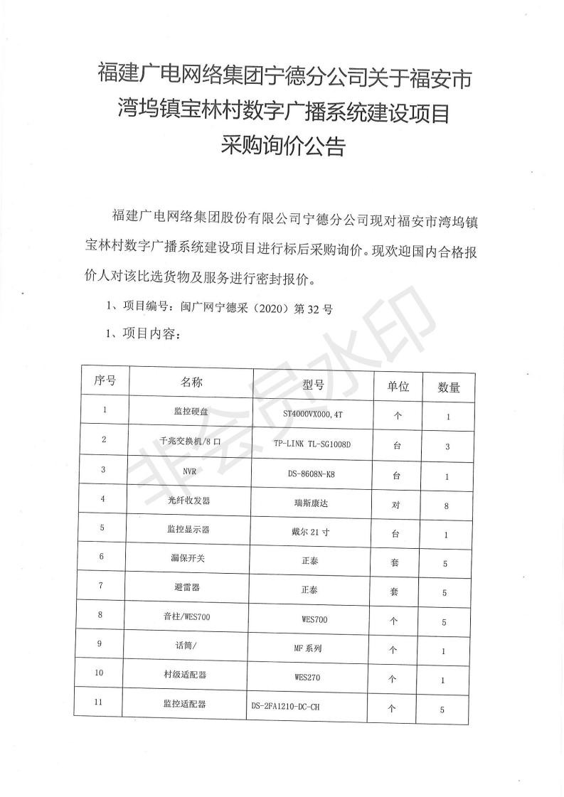 福安湾坞镇宝林村数字广播系统建设项目采购询价公告