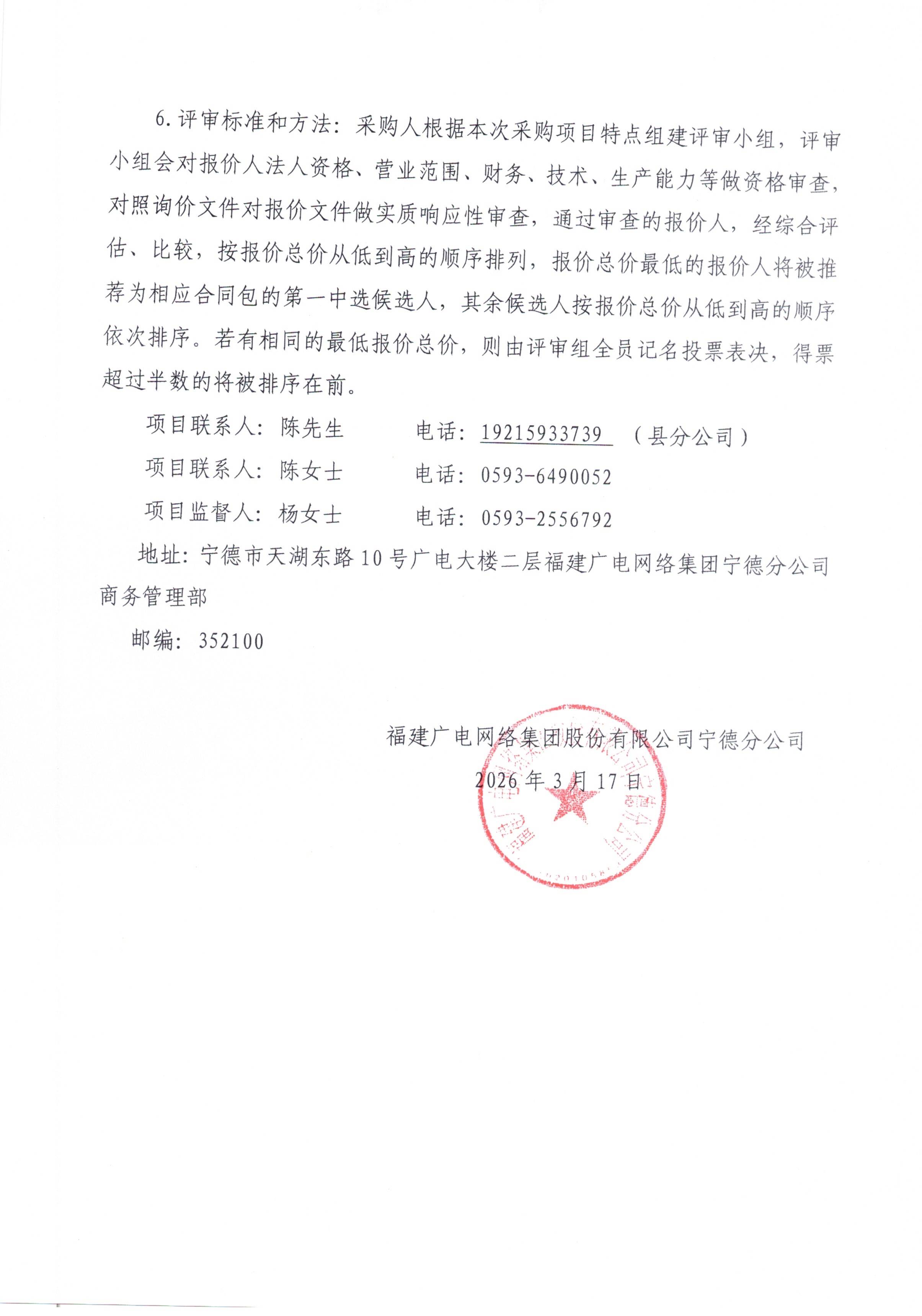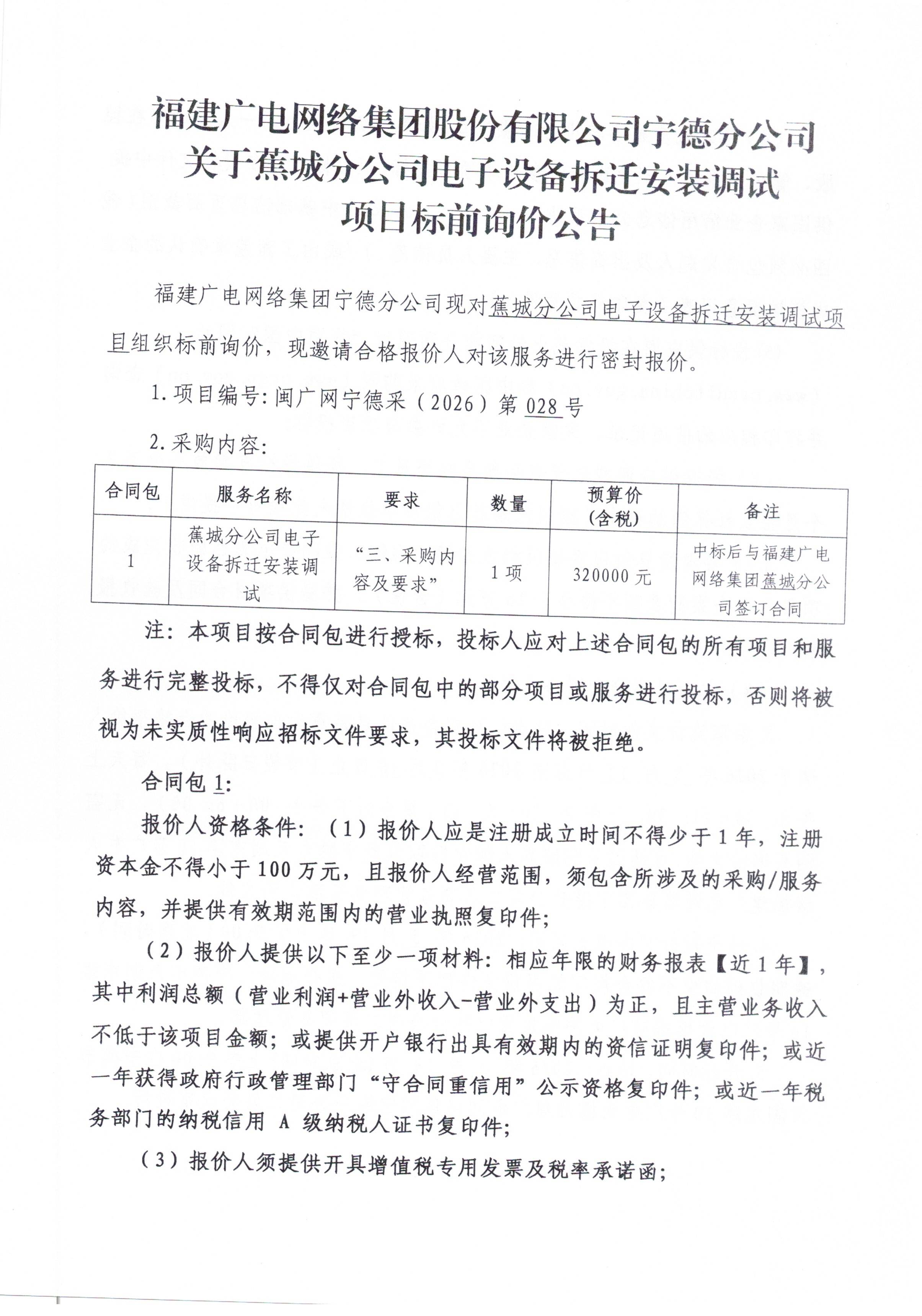 蕉城分公司电子设备拆迁安装调试项目公告(标前询价)