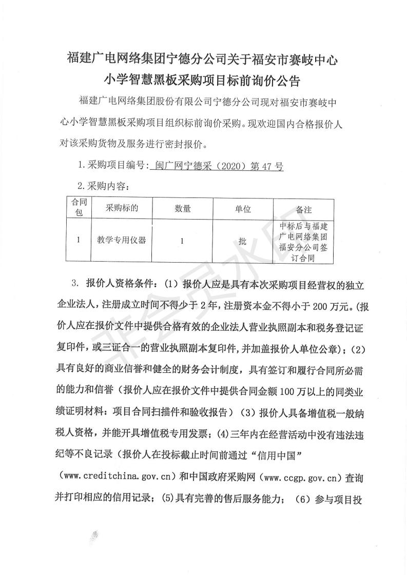 福安市赛岐中心小学智慧黑板采购项目标前询价公告
