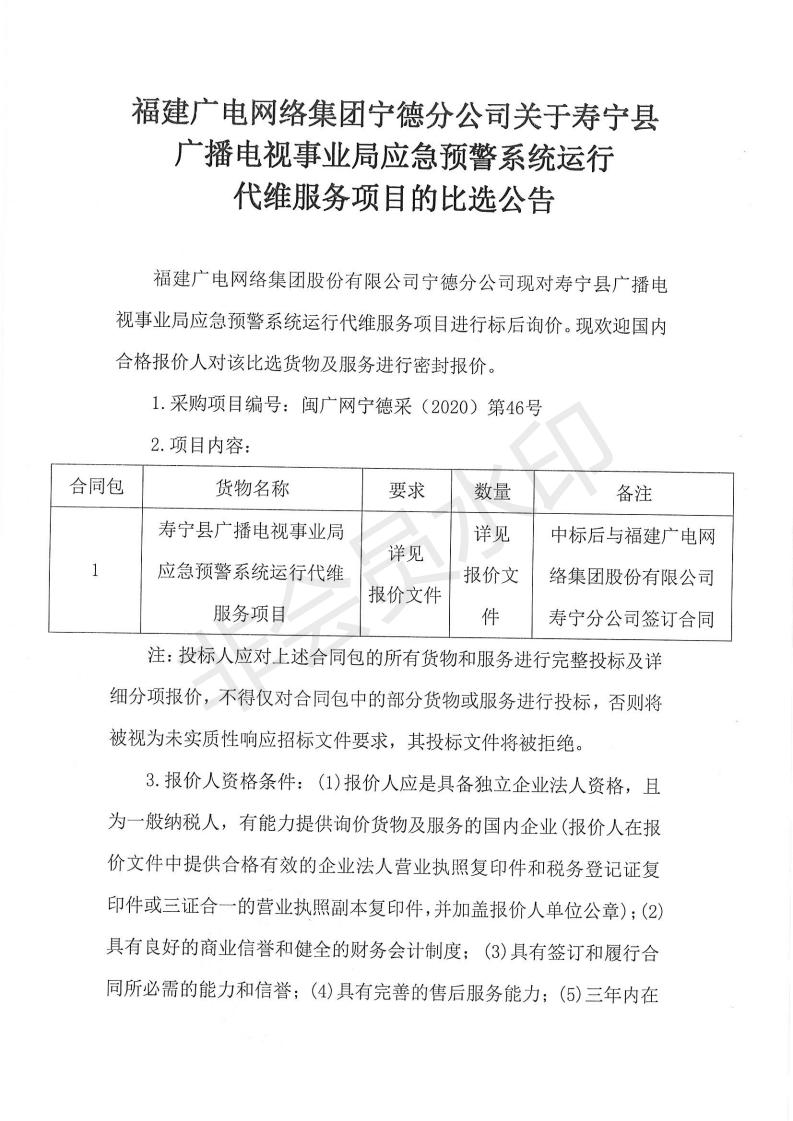 寿宁县广播电视事业局应急预警系统运行代维服务项目的比选公告