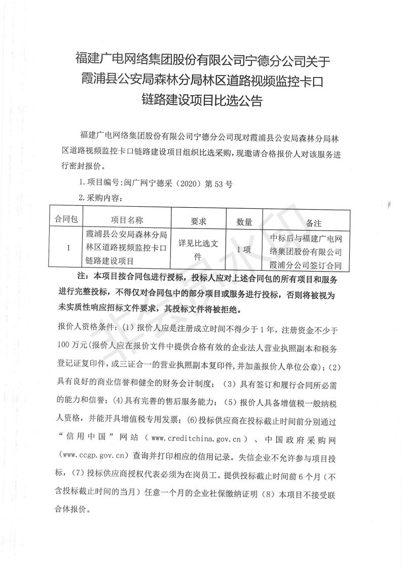 霞浦县公安局森林分局林区道路视频监控卡口链路建设项目比选公告