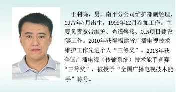南平分公司于利鸣同志荣获全国广播电视技术能手竞赛“三等奖”