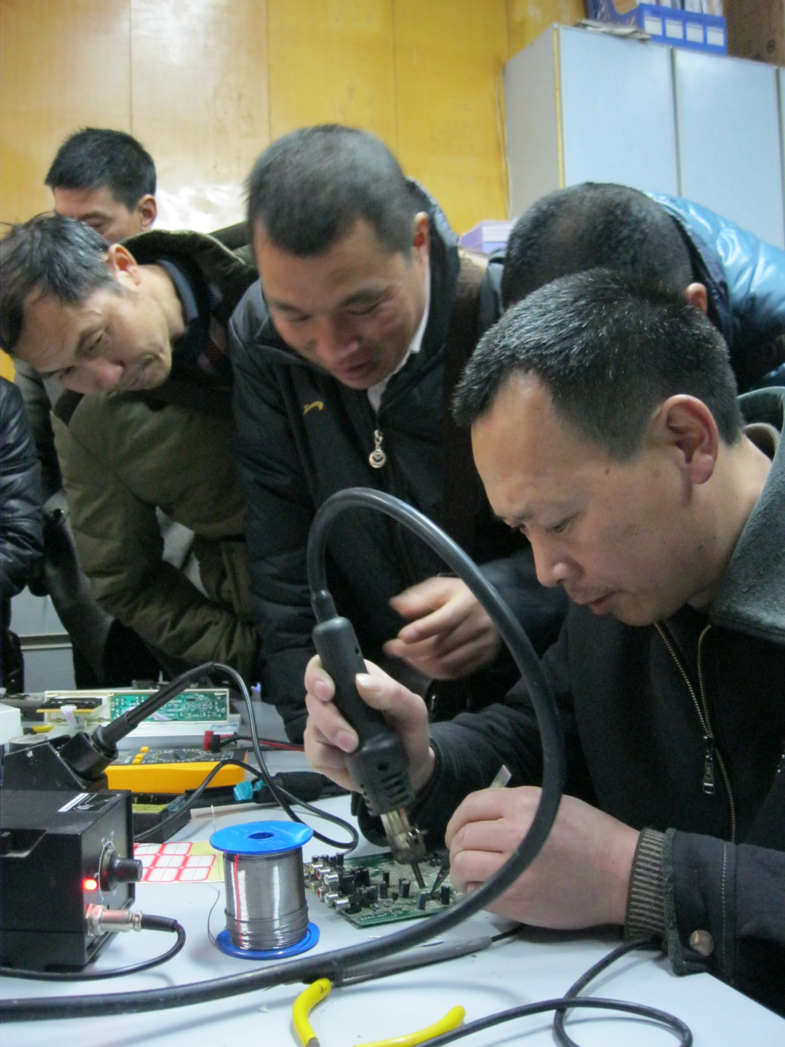 建瓯分公司机顶盒专业维修人员,从理论知识和现场操作两个方面展开培训,就机顶盒的基本工作原理、故障排除、电路诊断、维修技巧等通过投影幻灯片图文并茂、通俗易懂地进行讲解。随后,学员们还现场观摩维修流程,并动手参与维修,通过现场指导和经验传授,参训学员很快领会维修要点及维修事项,不到一个小时的时间,学员们就维修好6台机顶盒。大家表示今后将利用自己学到的知识为农村广大数字电视用户提供更加方便快捷、专业周到的机顶盒维修服务。