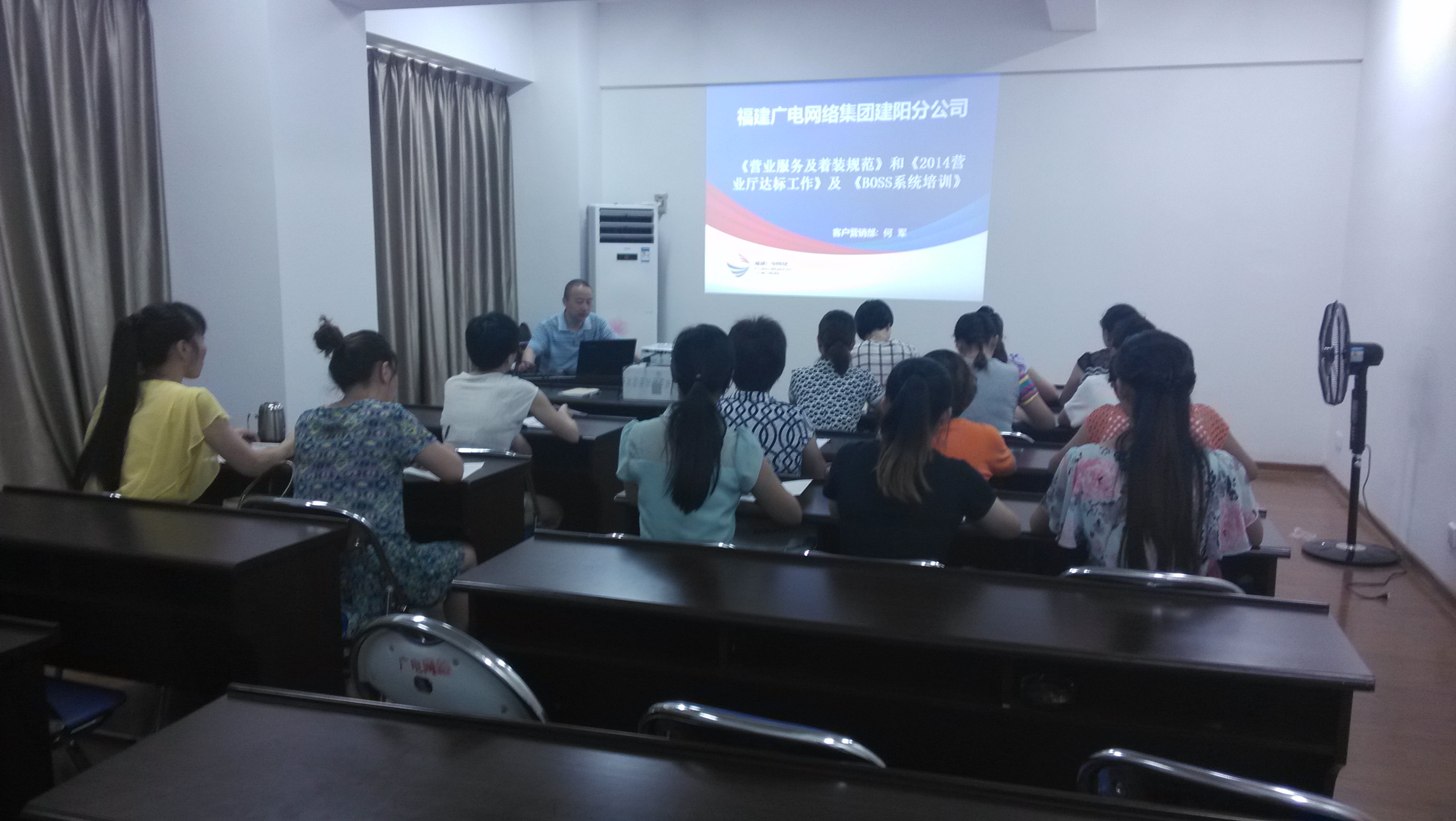 7月26日至27日,建阳分公司组织城关和乡镇营业厅营业员进行培训。培训内容主要有两个方面:一是系统讲解新BOSS系统各个应用模块、日常报表查看、营业前台操作、客户基础信息、客户出账规则等;二是强化2014营业厅达标项目培训。对营业厅服务及着装规范进行强化培训,对营业人员一一指导并进行考核。培训结束后要求所有培训人员在日常工作中要加强对系统的学习,并将营业厅达标项目培训的内容有效的应用在实际工作中,确保各项规范有效执行与应用。