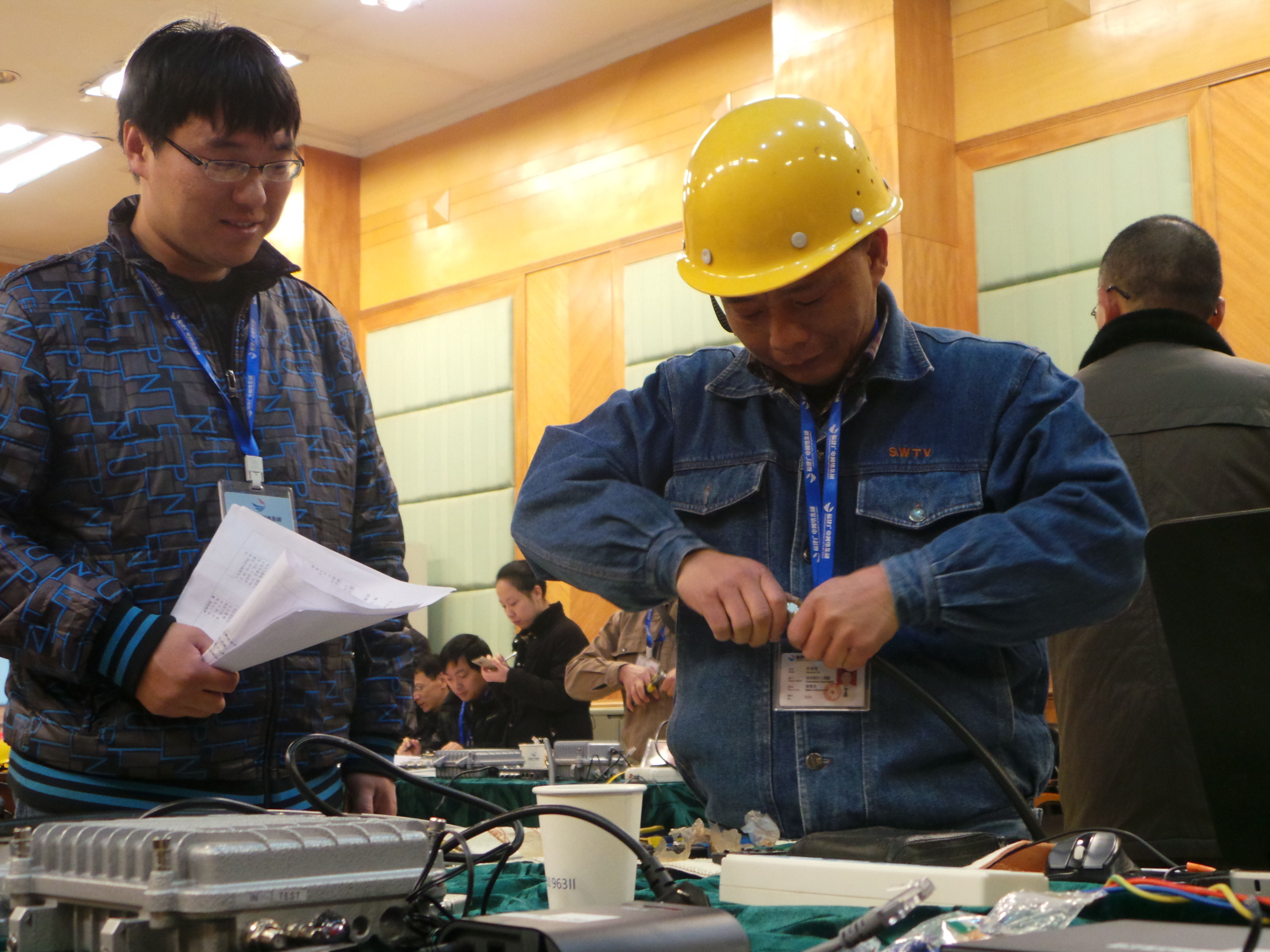邵武分公司对此次比赛高度重视,自去年11月下旬,开展了多层次、多渠道的岗位练兵活动,掀起了全体一线人员“学习知识、掌握技能、提高素质”的学习热潮。本次大赛由理论笔试、技能操作、上门服务规范三部分组成,考察内容涉及双向平台搭建、故障排查等多方面内容。比赛过程中选手将比赛现场模拟为在用户家安装维护的场景,并严格按照《福建广电网络集团上门服务规范》进行操作,累计得分最高的三名员工分别获得一、二、三等奖。南平分公司维护部为比赛做了具体点评。