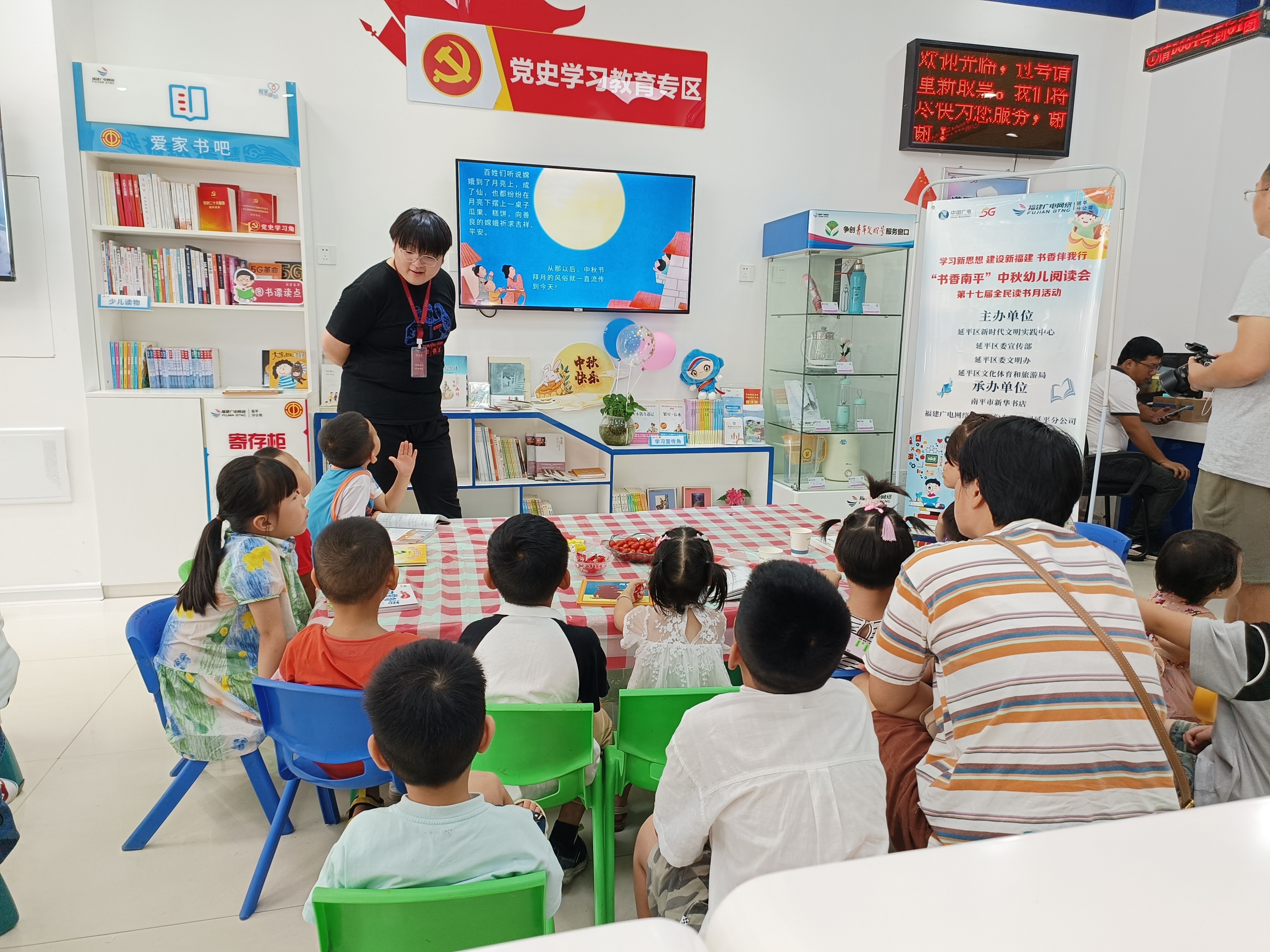 9月23日上午,延平分公司积极落实省委宣传部关于“书香八闽”全民读书月活动要求,联合延平区新时代文明实践中心、延平区委宣传部、延平区文体旅局和新华书店在商业城爱家驿站开展了“书香南平·中秋幼儿阅读会”活动。