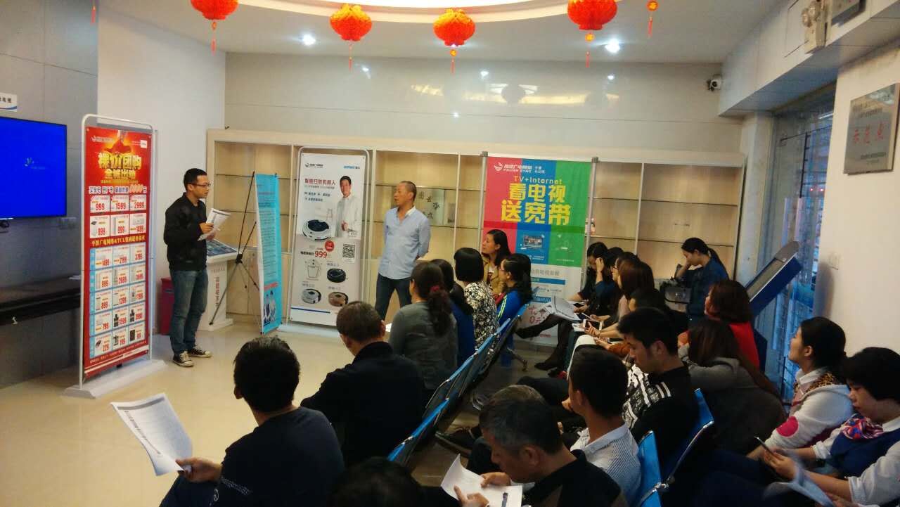 平潭分公司高度重视本次家电宣传促销活动,积极与TCL厂家对接,不断丰富活动内容,除了销售常规彩电外,还增加了空调、冰箱、洗衣机、热水器、油烟机、电磁炉等十余种家电,为用户提供一站式便捷服务。活动期间,分公司领导施心平亲临一线现场指导。为确保活动取得实效,平潭分公司抽调市场营销部、各广电网络中心站一线营销人员组成专门业务小组,节前强化集中业务培训,“五一”期间在各大营业厅现场销售推广。为扩大本次活动的宣传覆盖面,平潭分公司进行了多渠道、多方式的宣传,自4月28日起,累计向用户推送了4.8万条团购促销活动短信,连续投放机顶盒开机第三帧广告,在平潭时报连续投放硬广。除此之外,安排高清宣传车下乡开展路演宣传,组织人员到平潭体育场、海坛步行街等人流量较大的地方分发广告单。在各大营业厅内积极营造浓厚的促销氛围,包括拱门、LED滚屏、地贴、灯布、展架等。一系列形式多样、内容丰富的宣传促销推介活动,吸引了众多市民前往咨询和办理,截止5月3日,业务小组累计销售各类家电共25台,销售金额达到4.2万元。