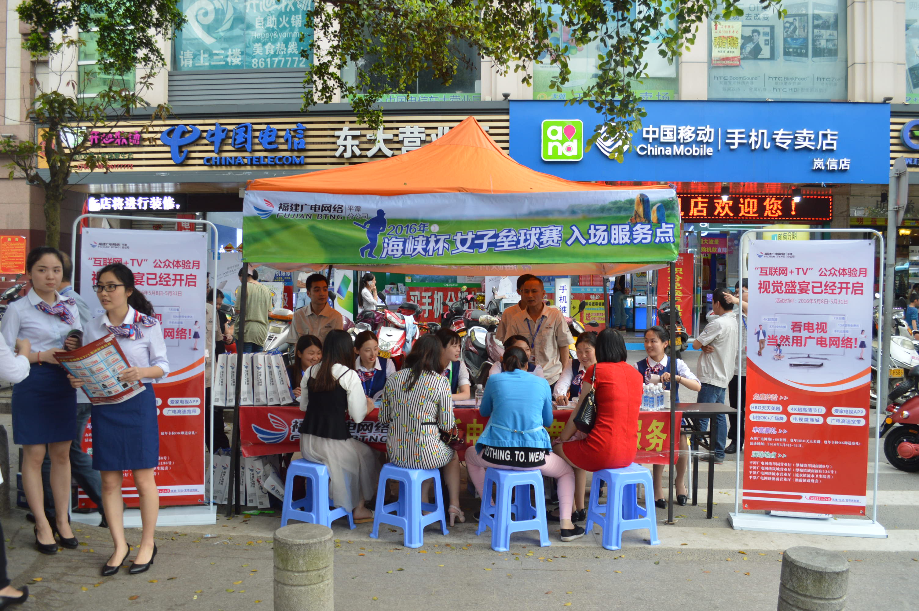 本次活动设在城区人流量最多的平潭县体育场门口,平潭分公司组织营销小组人员向广大用户宣传讲解广电网络最新上线的多屏互动、卡拉OK、HBO天天美剧、4K超高清电视、电视微商城等产品。同时,现场还重点推出广电网络爱家套餐、家电团购促销活动等,工作人员现场为用户办理业务,提供优质高效便捷的服务。