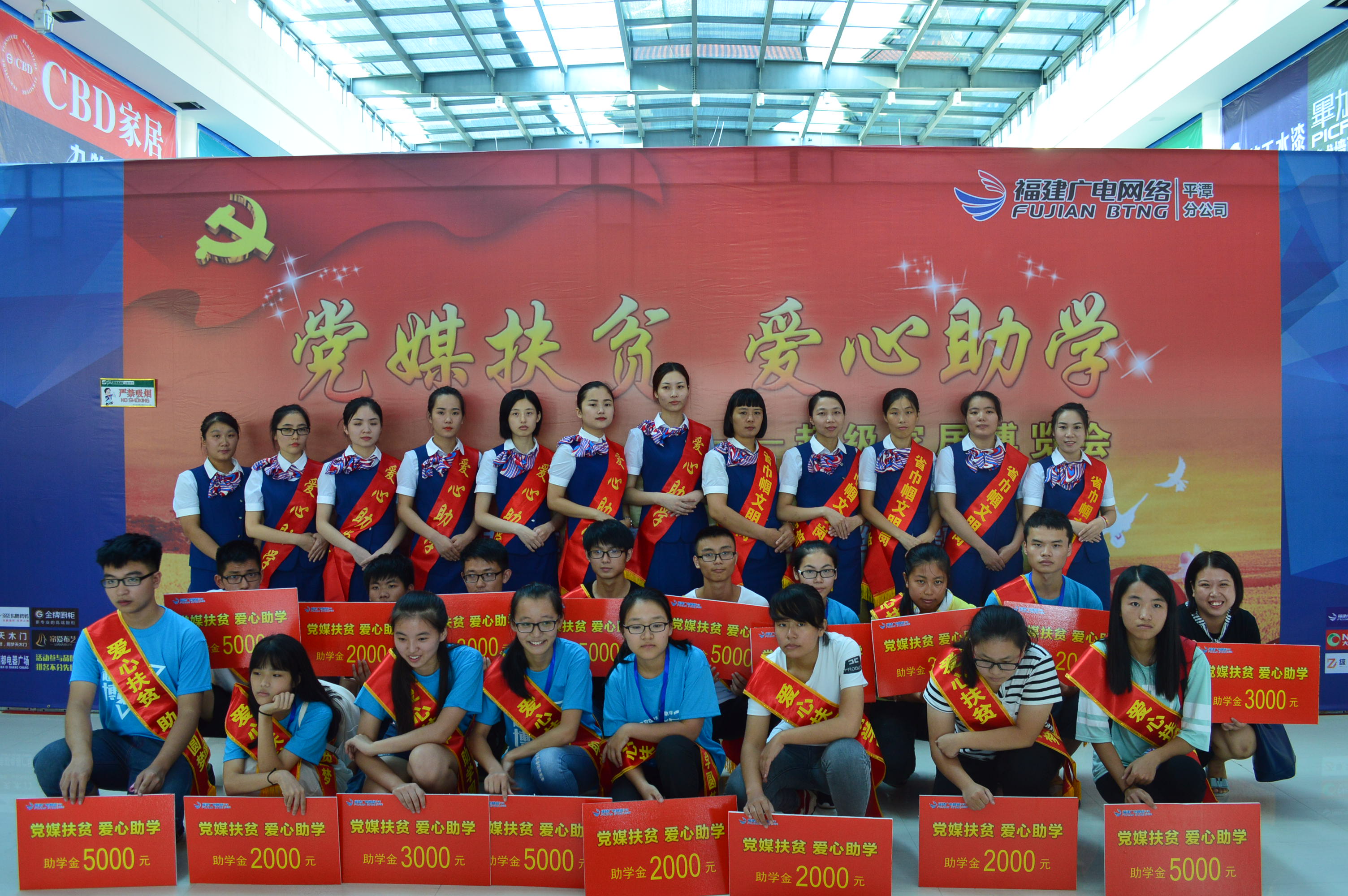 8月19日至20日,为积极探索精准扶贫新模式,平潭分公司抓住金秋助学契机,联合平潭30多家建材家居商家在平潭台湾商品免税市场经贸会展中心开展“党媒扶贫.爱心助学”活动,