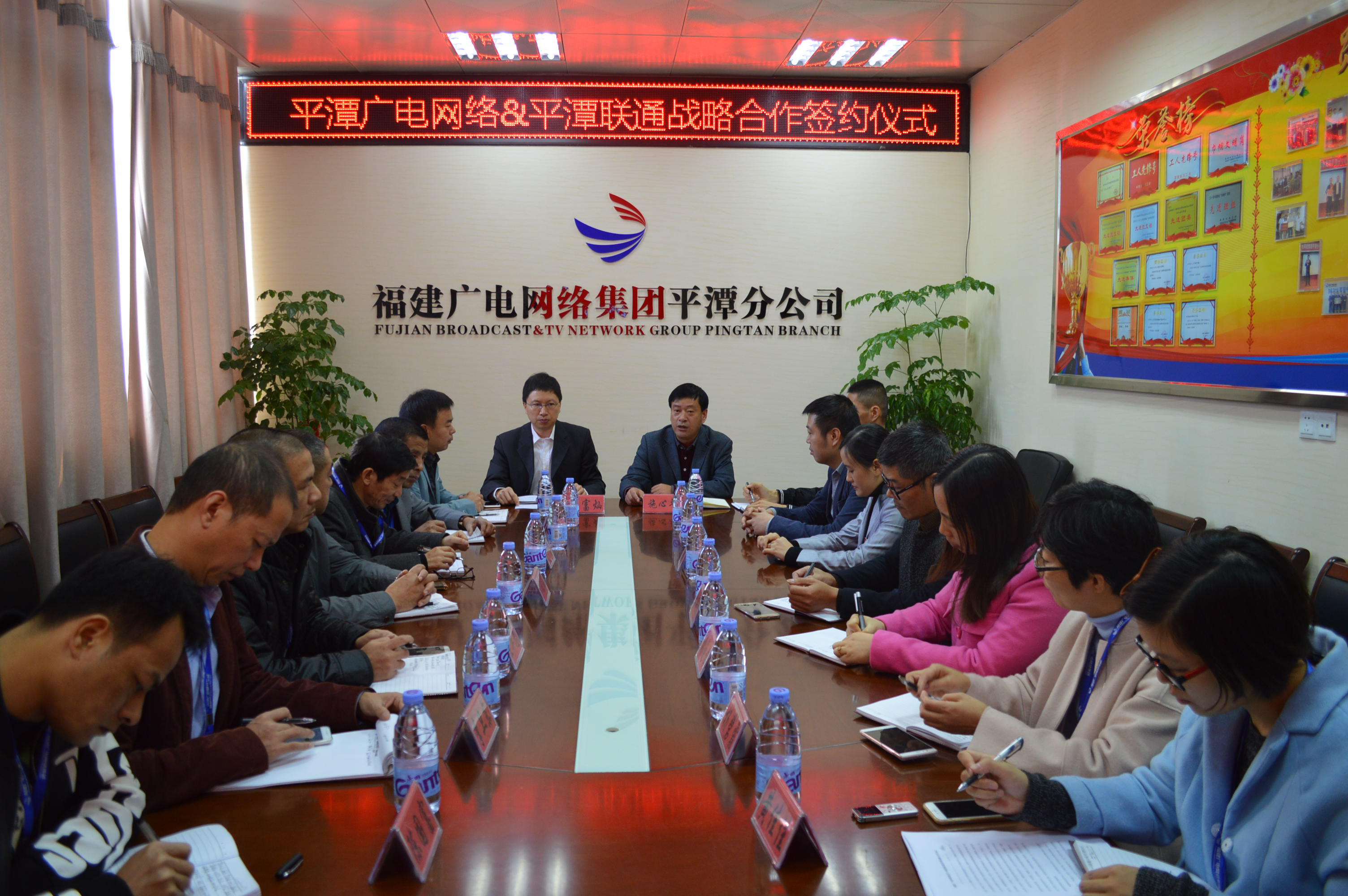 福建广电网络集团平潭分公司与中国联通平潭分公司有着天然的资源优势互补关系,双方用户规模都在7万多户,市场合作空间潜力大。双方的乡镇分支机构及终端门店资源丰富,可以开展多元化合作。还可通过整合双方线上线下优势宣传资源,发挥传播效益最大化。双方在物联网、ICT、云计算等行业信息化应用方面也具备广泛的合作前景。