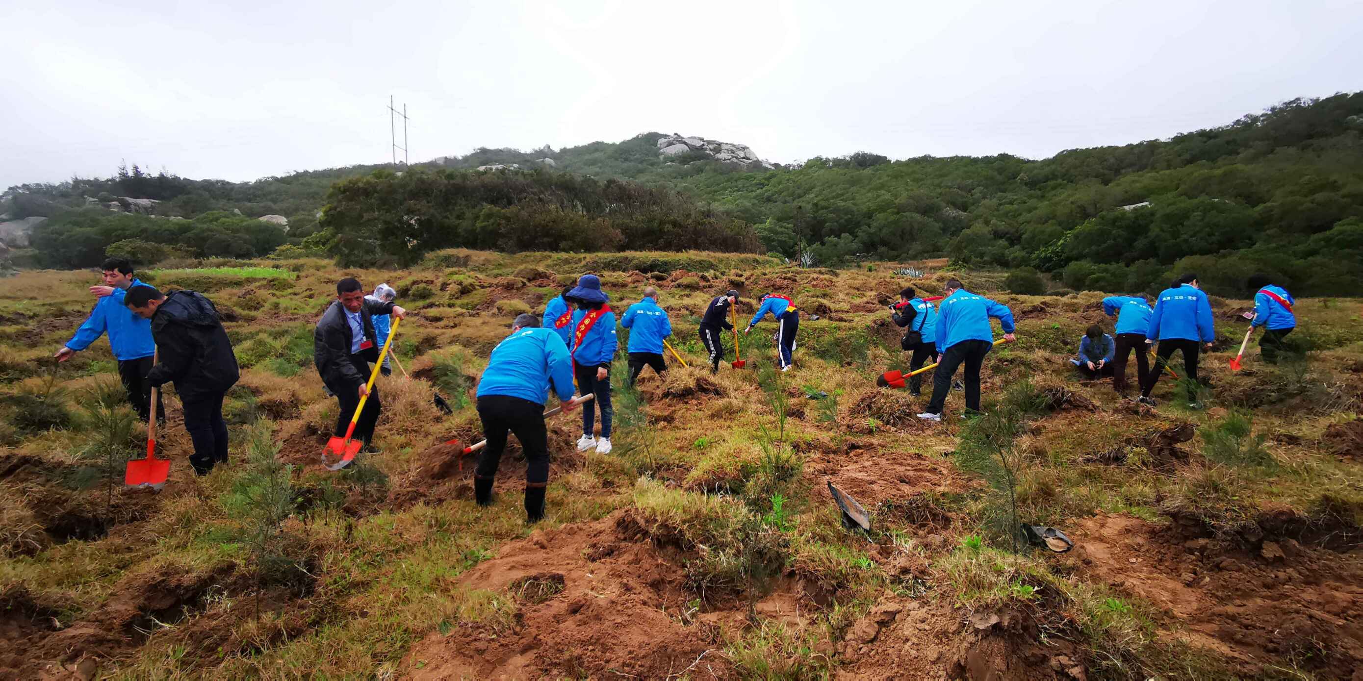 平潭分公司党委书记、总经理施心平率公司领导班子成员林平以及30多名党员、团员、巾帼志愿者前往北厝镇芦山村开展义务植树活动。到达植树点后,志愿者们三五人一组,按照现场技术人员的指导,齐心协力挥锹铲土、扶直树苗、培实新土、提桶浇水,每一道工序都做得认真扎实,植树现场一片热火朝天的景象。经过两个多小时的辛勤劳作,百余株树苗挺立在荒地上,为春天再添新绿,为平潭综合实验区争创全国森林城市贡献一份力量。