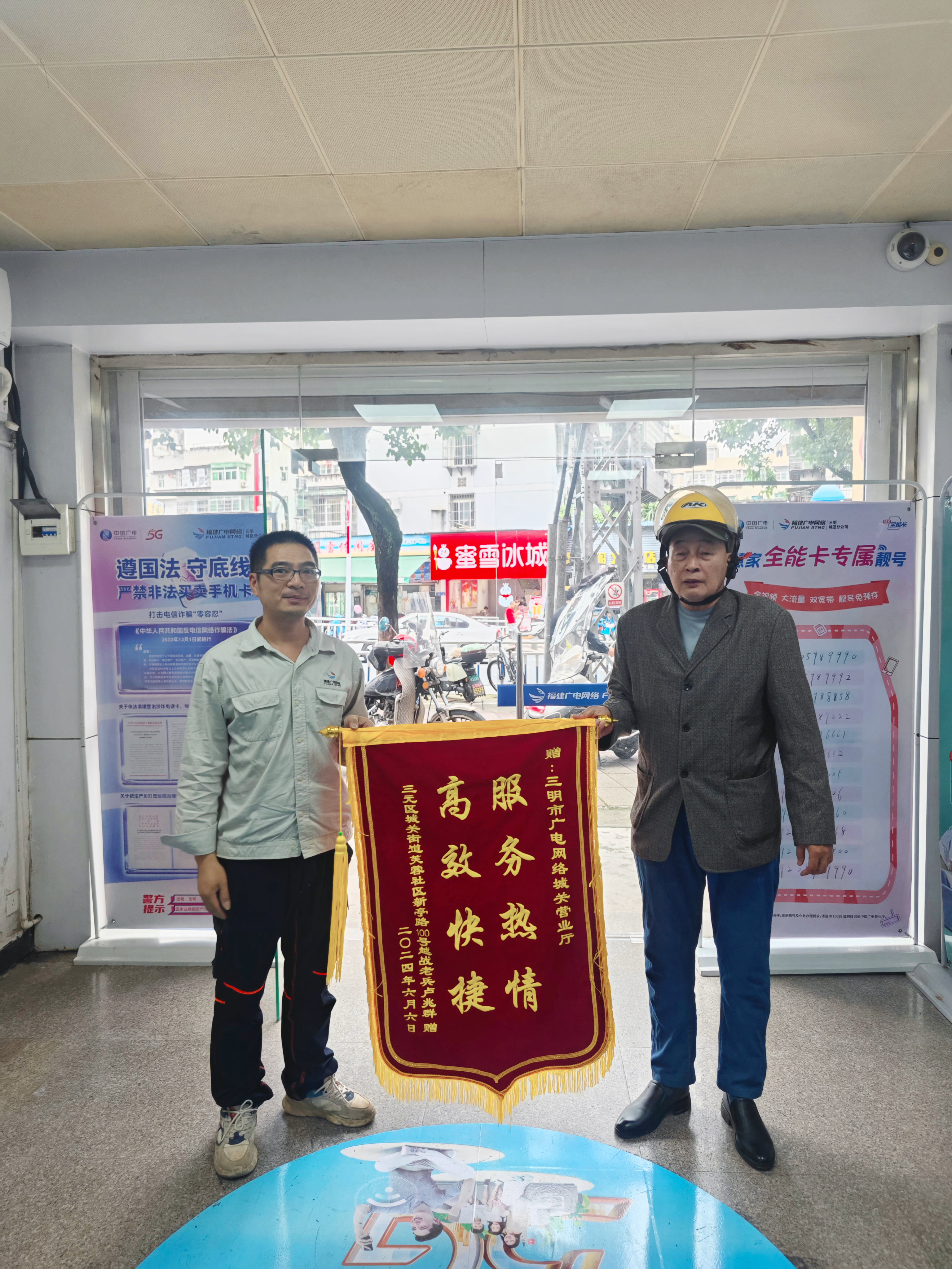 6月10日下午,三元分公司城关营业厅收到一位老者送来的锦旗,写着“高效快捷 服务热情”,感谢福建广电网络三元分公司对退役军人的帮扶,感谢陈小羽同志耐心、细致、周到的服务。这也是三元分公司深入做好退役军人服务保障工作,践行党媒政网职责的生动体现。老者名叫卢兆群,…