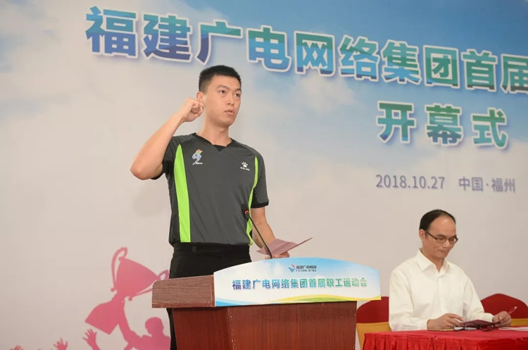 省直机关工委副书记黄青发表致辞,代表省直工委,对福建广电网络集团首届职工运动会的顺利举行表示热烈的祝贺!他表示,在全省上下贯彻落实习近平新时代中国特色社会主义思想之际,福建广电网络集团举行职工运动会,丰富群众精神文化生活,通过运动来强身健体,提振精气神,推进福建广电网络转型升级。希望全体广电网络的员工把体育场上的这种精神融入到推动集团发展转型上,力争新的突破和发展,为我省国有文化企业发展谱写新的篇章,成为建设社会主义先进文化的重要力量。
